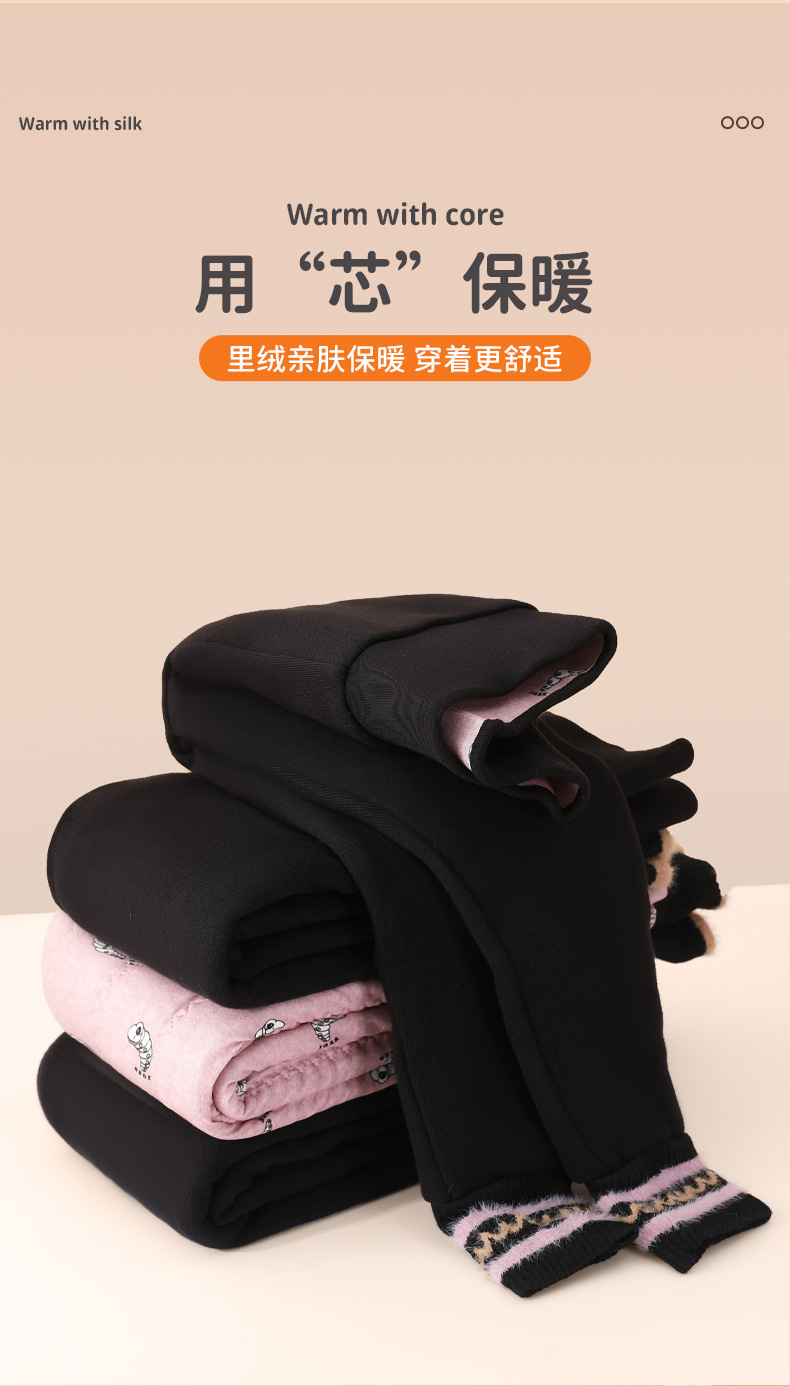 여자 실크면 두꺼운 높은 허리 따뜻한 바지 어린이 레깅스 가을과 겨울 여자 바깥 옷 두꺼운 면 바지스토어 가기