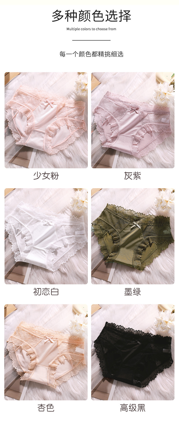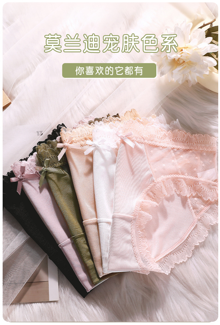 여성 속옷 아이스 실크 항균 원활한 허리 섹시한 레이스 여름 얇은 편안한 통기성 고급 브리프