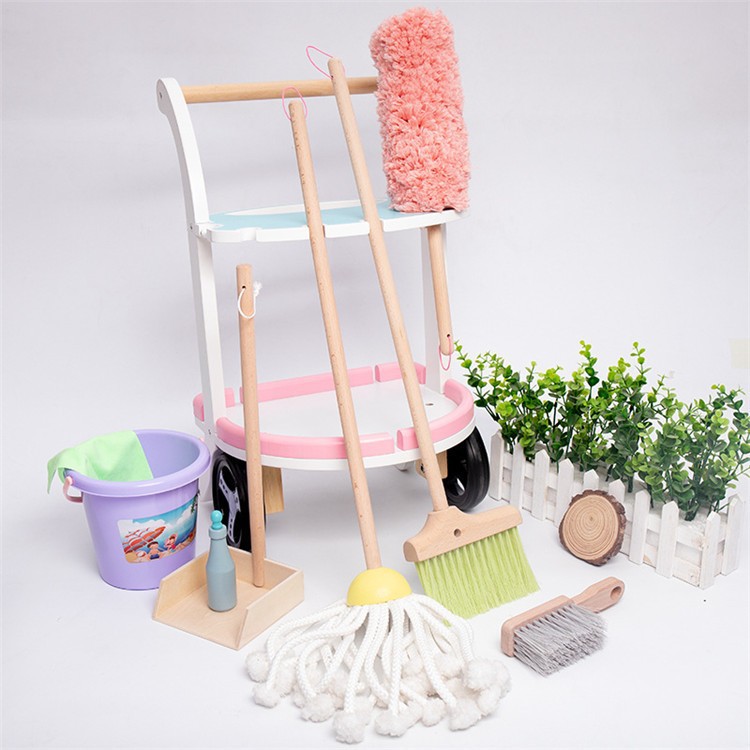 어린이 장난감 빗자루 더스트 팬 청소 및 청소 세트 소년과 소녀 놀이 홈 청소 자동차 조합 나무 장난감스토어 가기