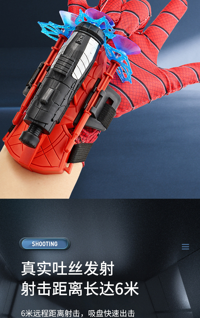 • 업그레이드된 검은 거미(송신기 + 부드러운 총알 3개 + 장갑에는 거미 실크가 함께 제공됨)