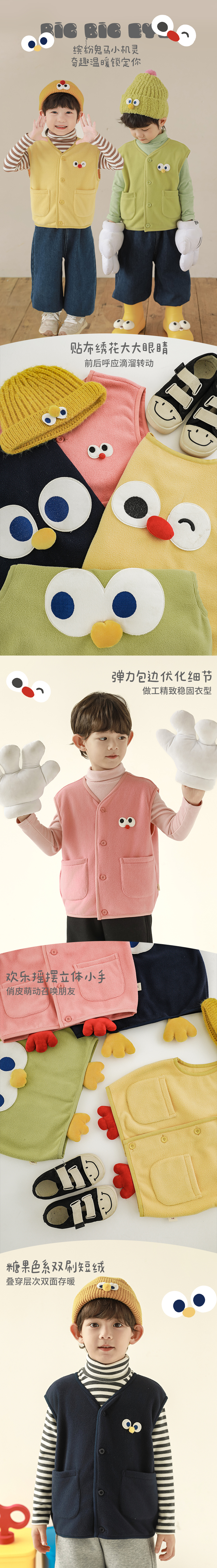 Wulibu Yinan 2025 새로운 만화 캔디 컬러 레이어드 조끼 겨울 패션 다용도 아동 조끼 트렌드