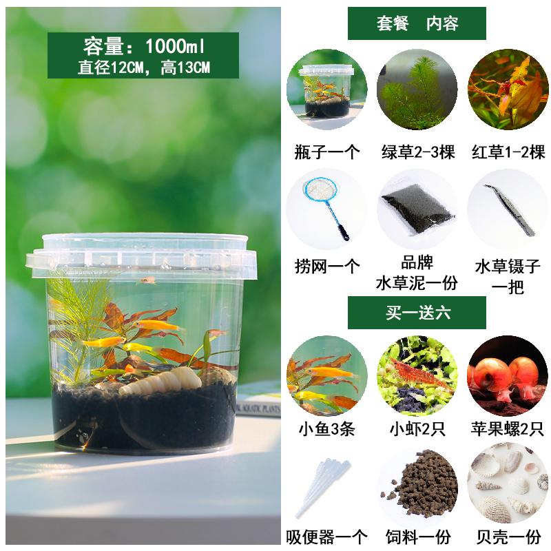 생태 병 마이크로 풍경 diy 데스크탑 자기 순환 미니 물고기 탱크 새우 마이크로 풍경 생태 전체 작업 세트스토어 가기
