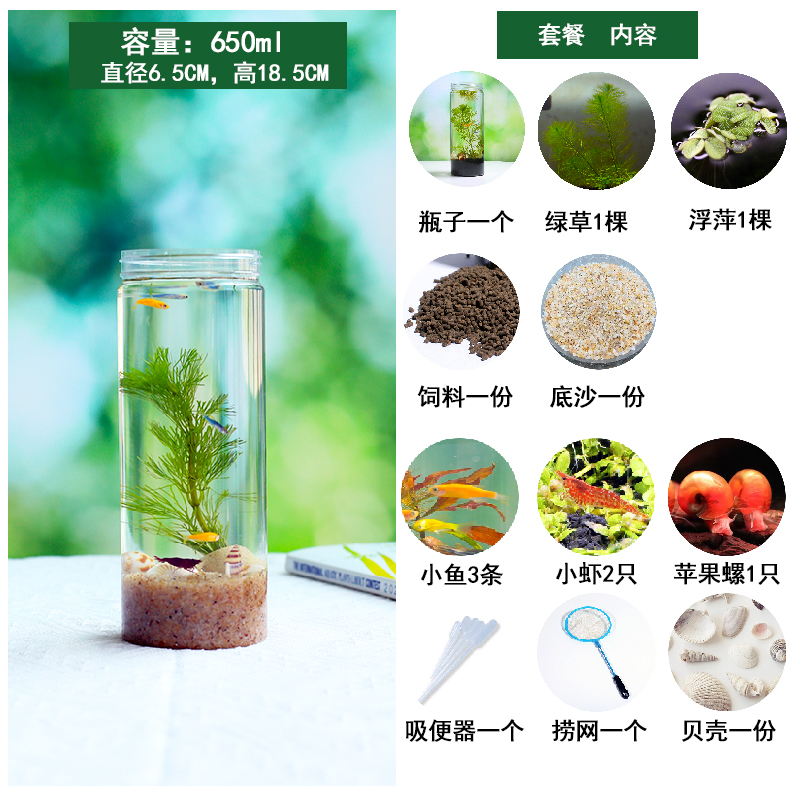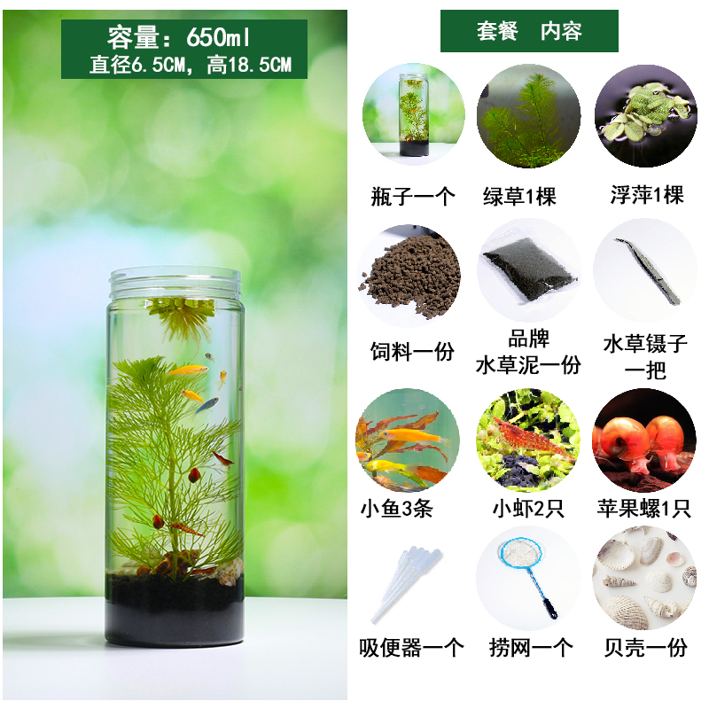 생태 병 마이크로 풍경 diy 데스크탑 자기 순환 미니 물고기 탱크 새우 마이크로 풍경 생태 전체 작업 세트