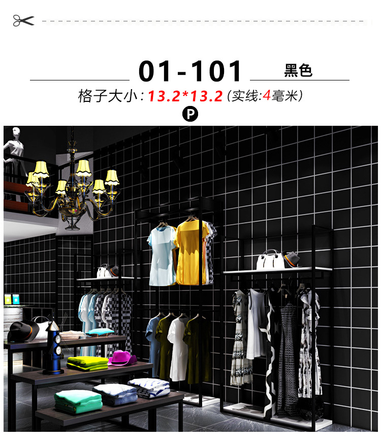 흑백 격자 무늬 사각형 벽지 비 자기 접착 북유럽 여성 의류 우유 차 가게 온라인 빨간색 배경 벽지스토어 가기