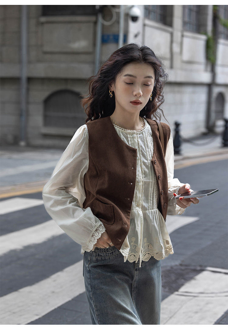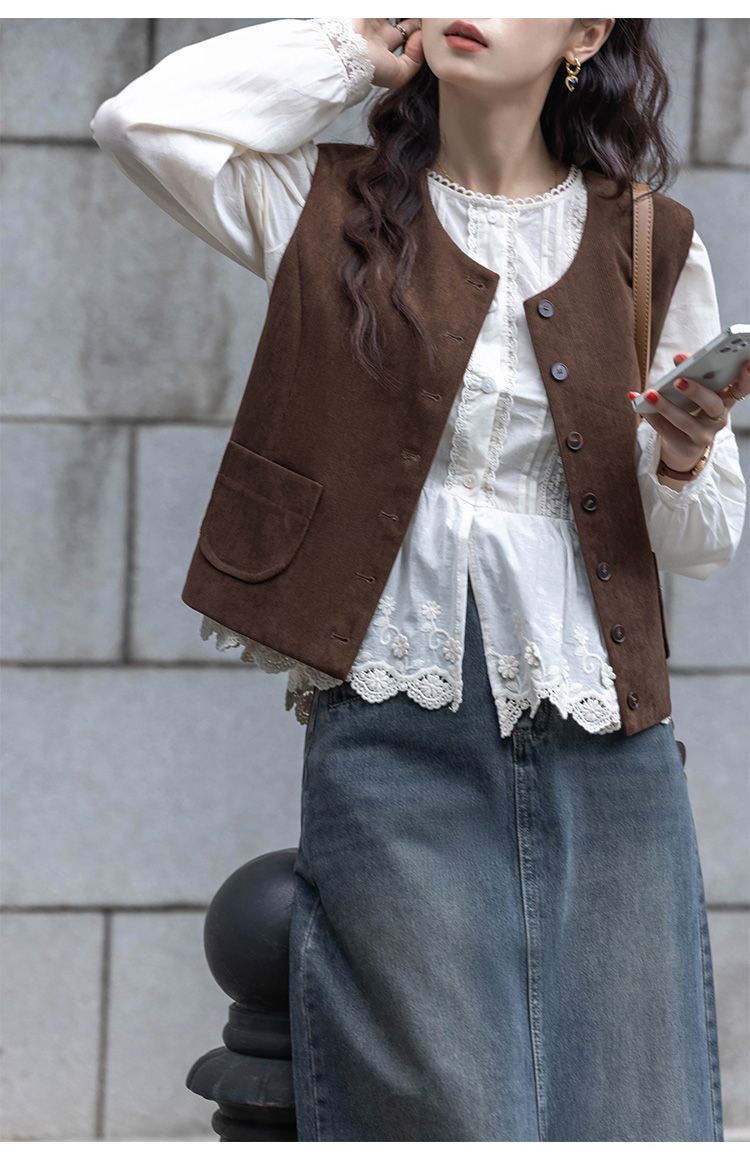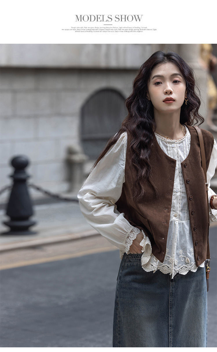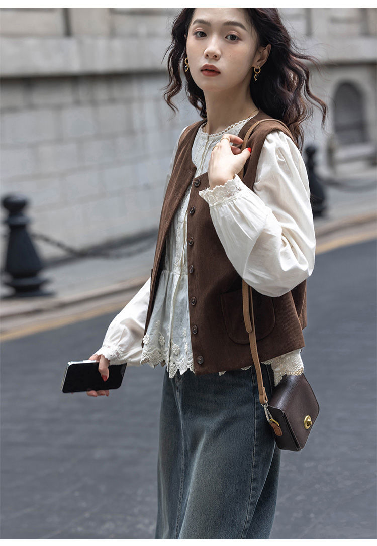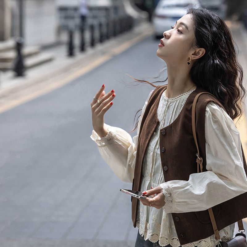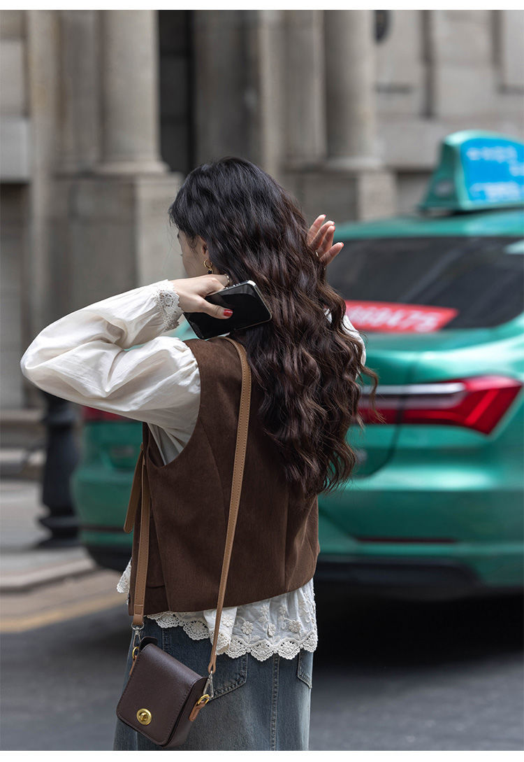 여성용 브라운 조끼 2025 봄, 가을 새로운 스타일 작은 복고풍 레이어드 민소매 탑 재킷 다용도 양복 조끼스토어 가기