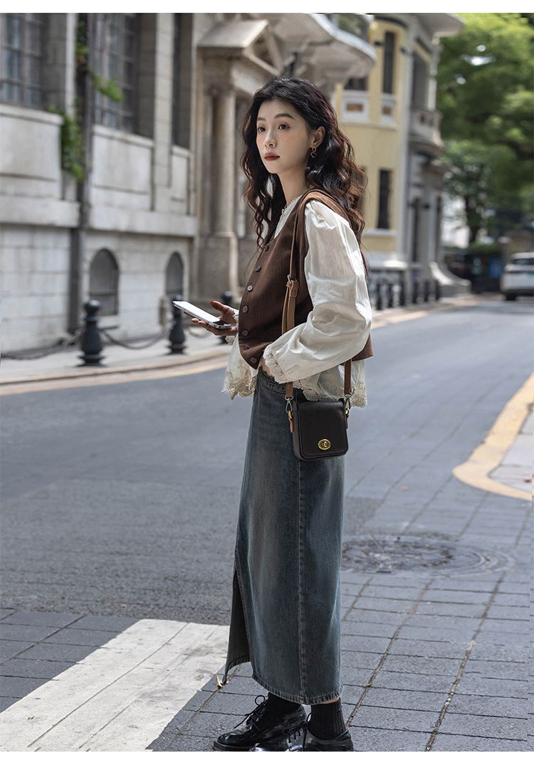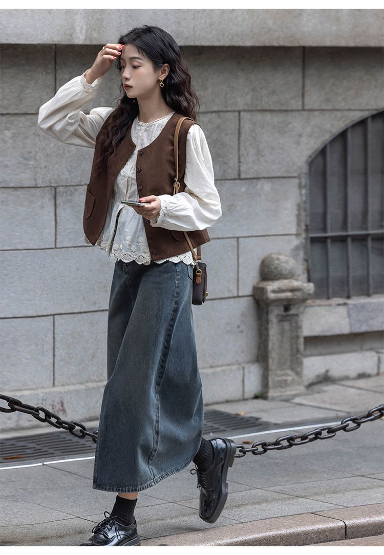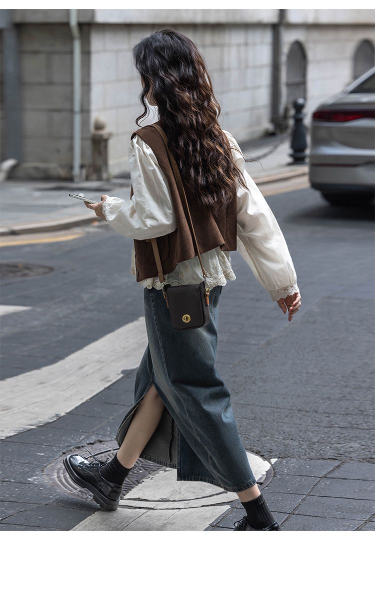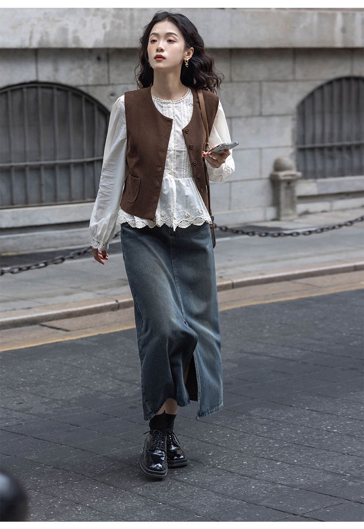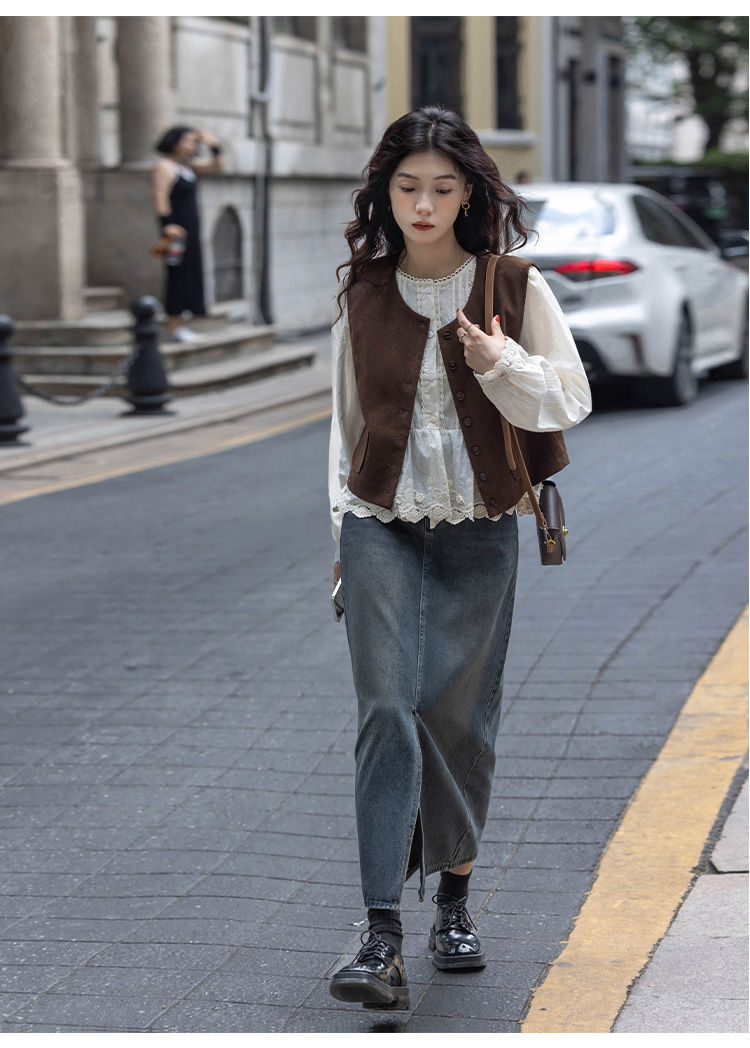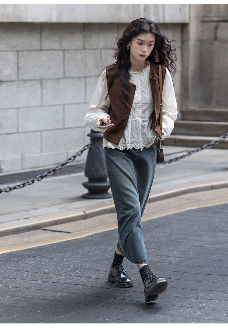 여성용 브라운 조끼 2025 봄, 가을 새로운 스타일 작은 복고풍 레이어드 민소매 탑 재킷 다용도 양복 조끼스토어 가기