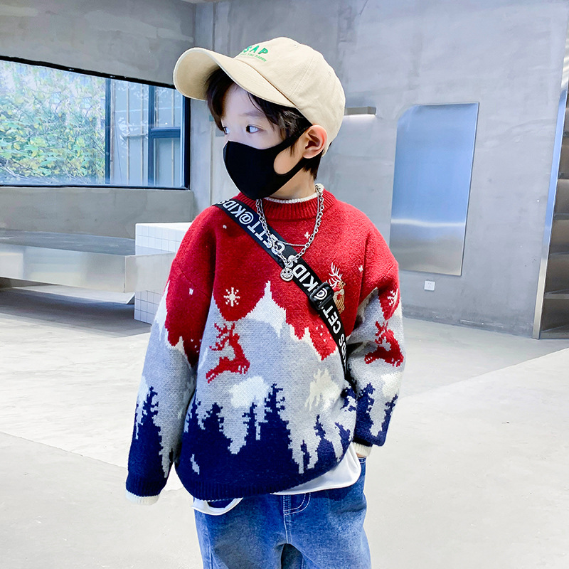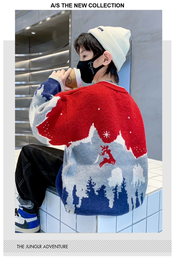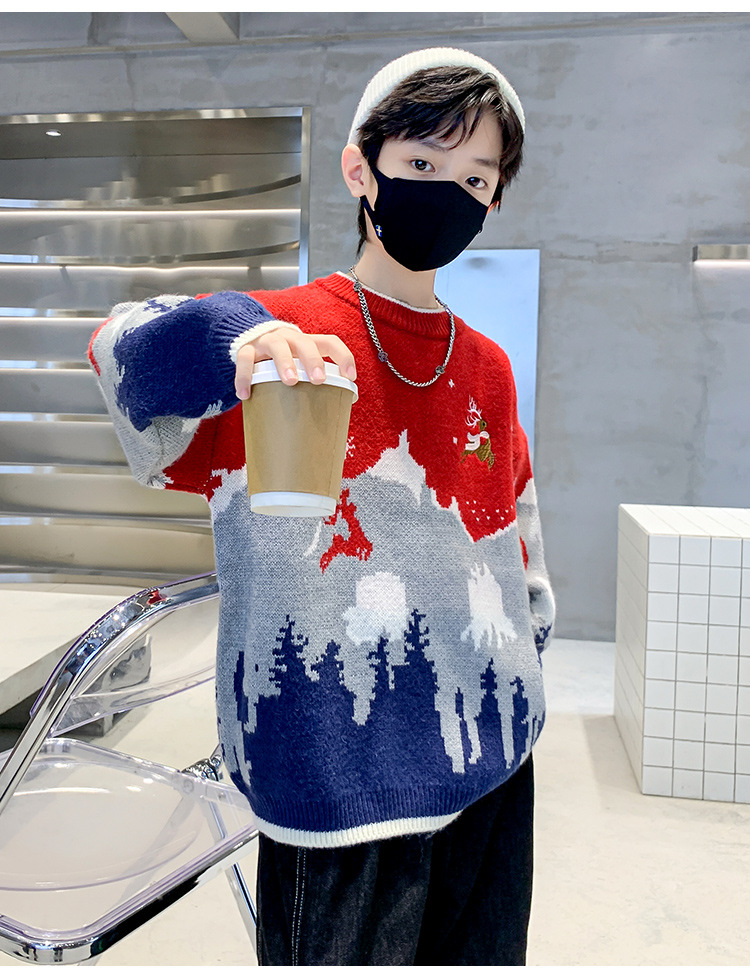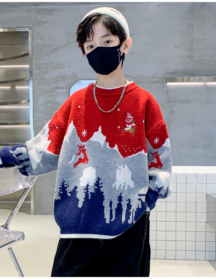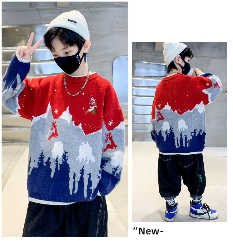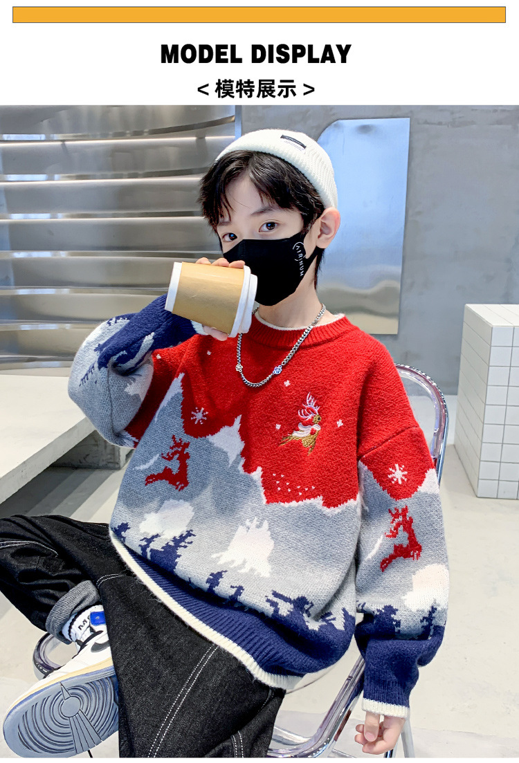 소년의 겨울 붉은 새해 스웨터 2024 새로운 어린이 서양식 튀김 거리 중다 어린이 두꺼운 따뜻한 니트웨어