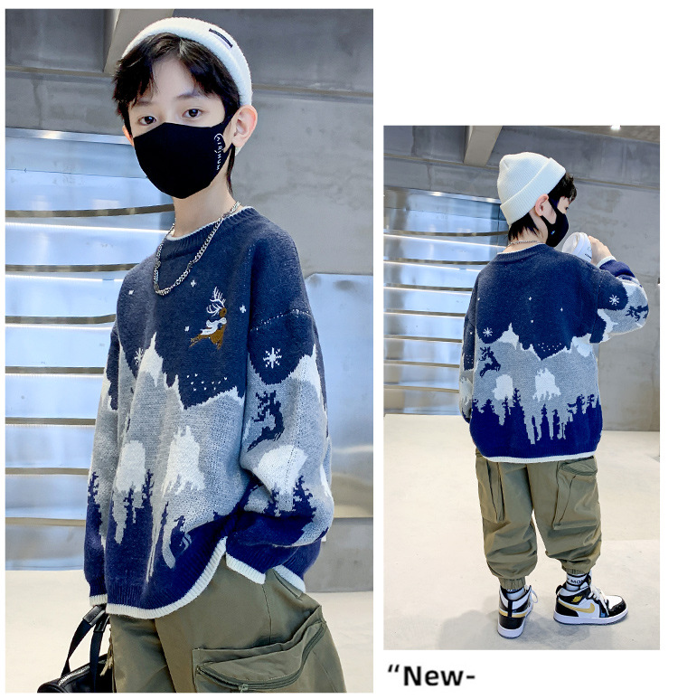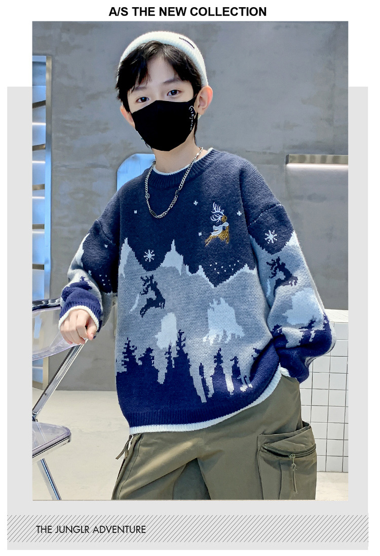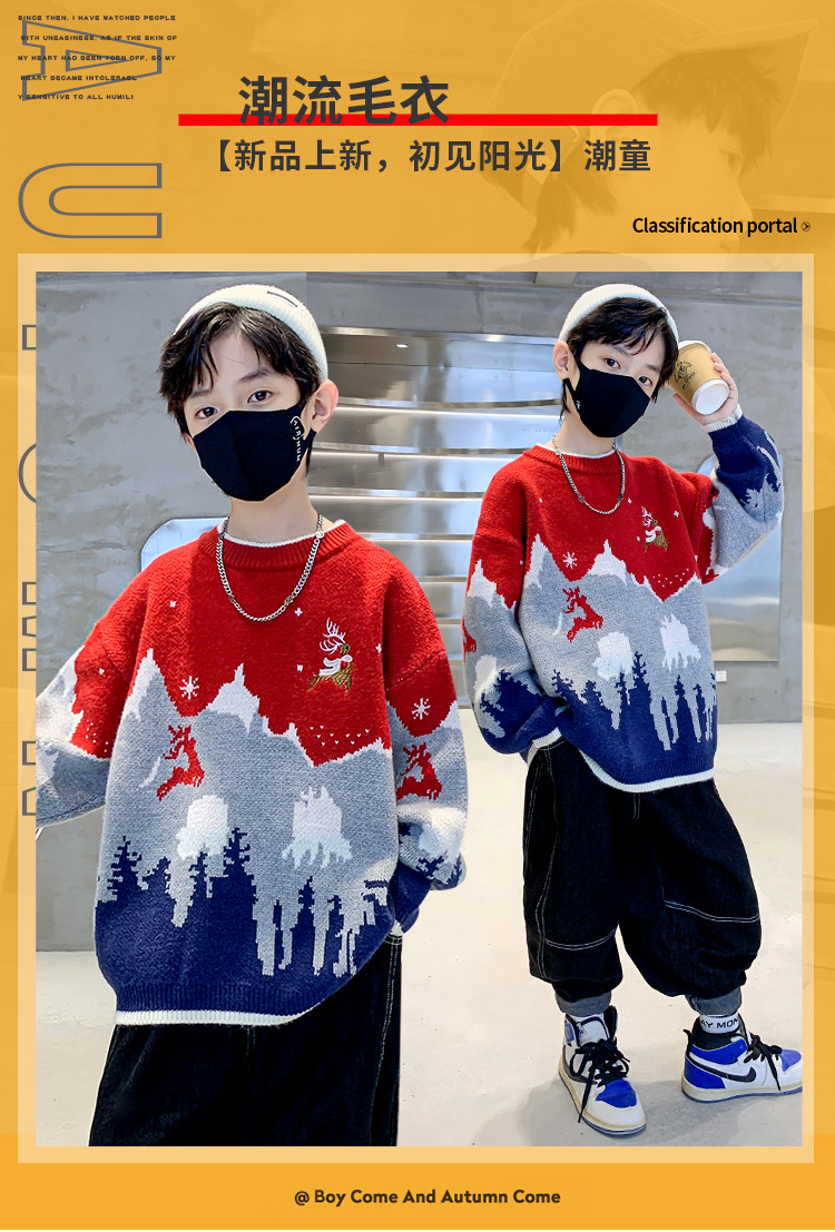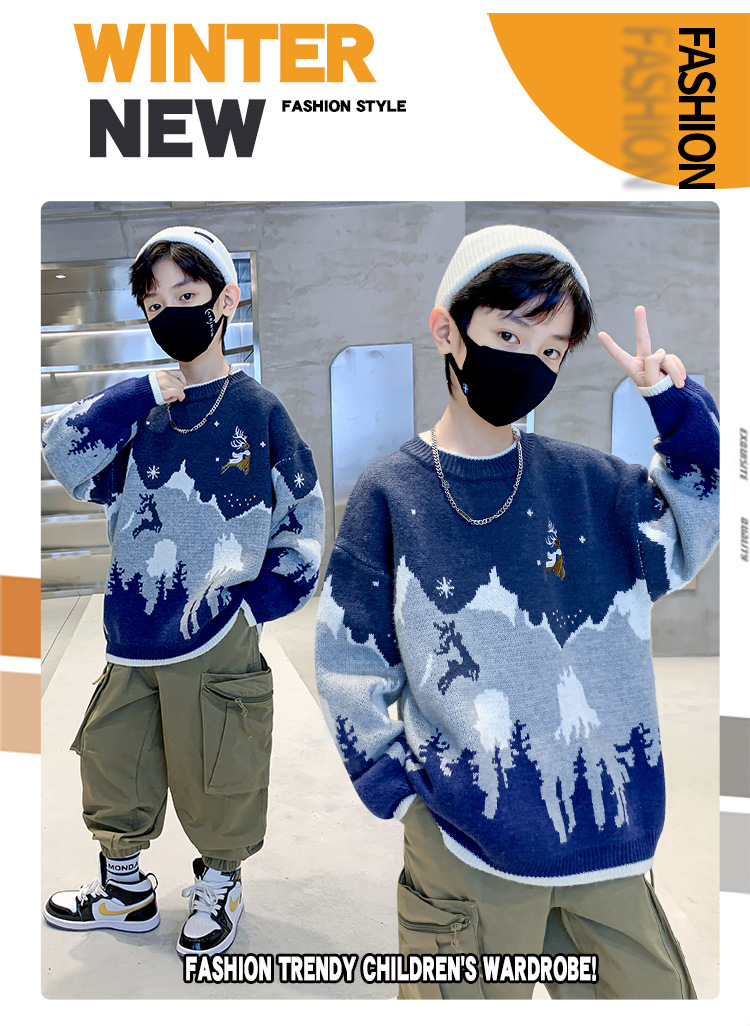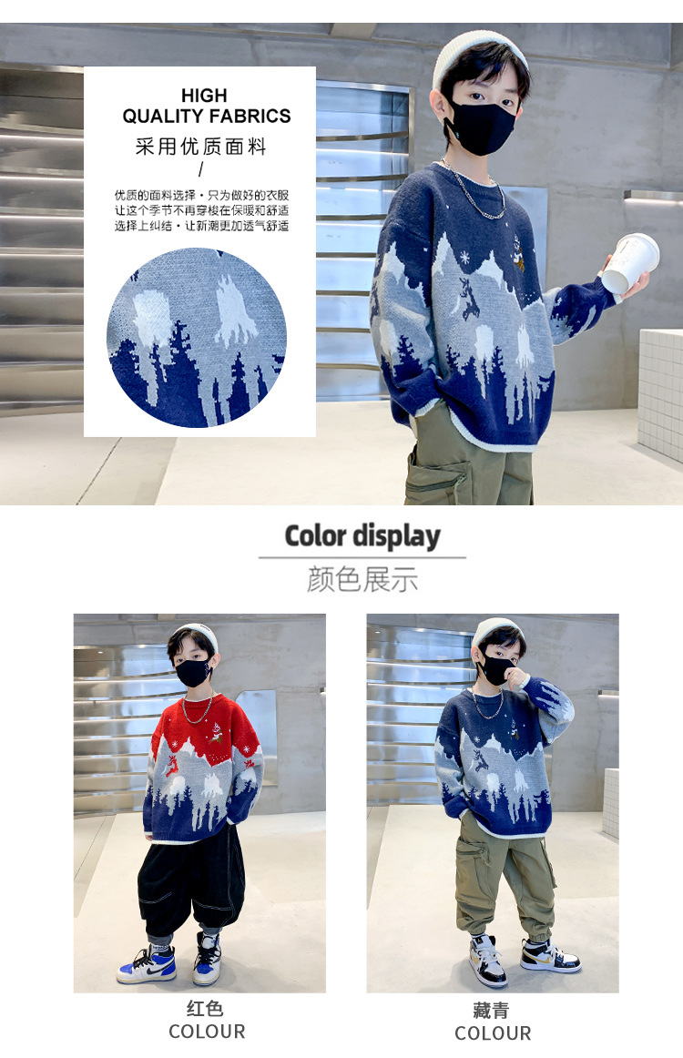 소년의 겨울 붉은 새해 스웨터 2024 새로운 어린이 서양식 튀김 거리 중다 어린이 두꺼운 따뜻한 니트웨어