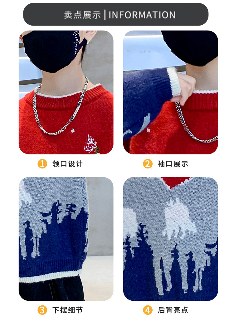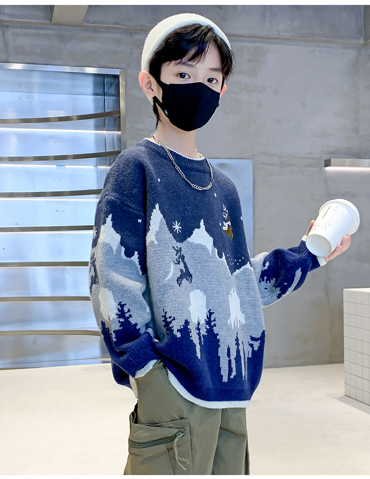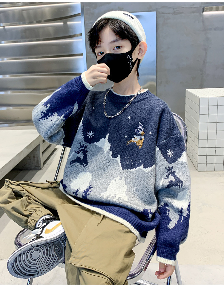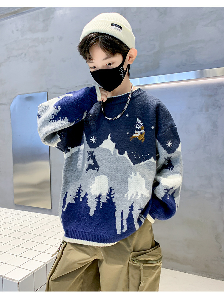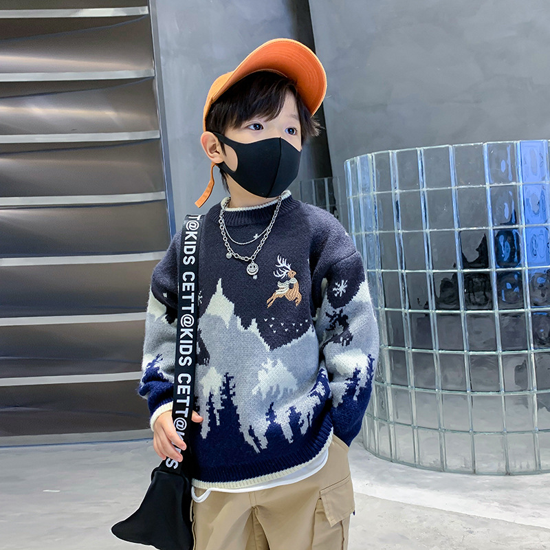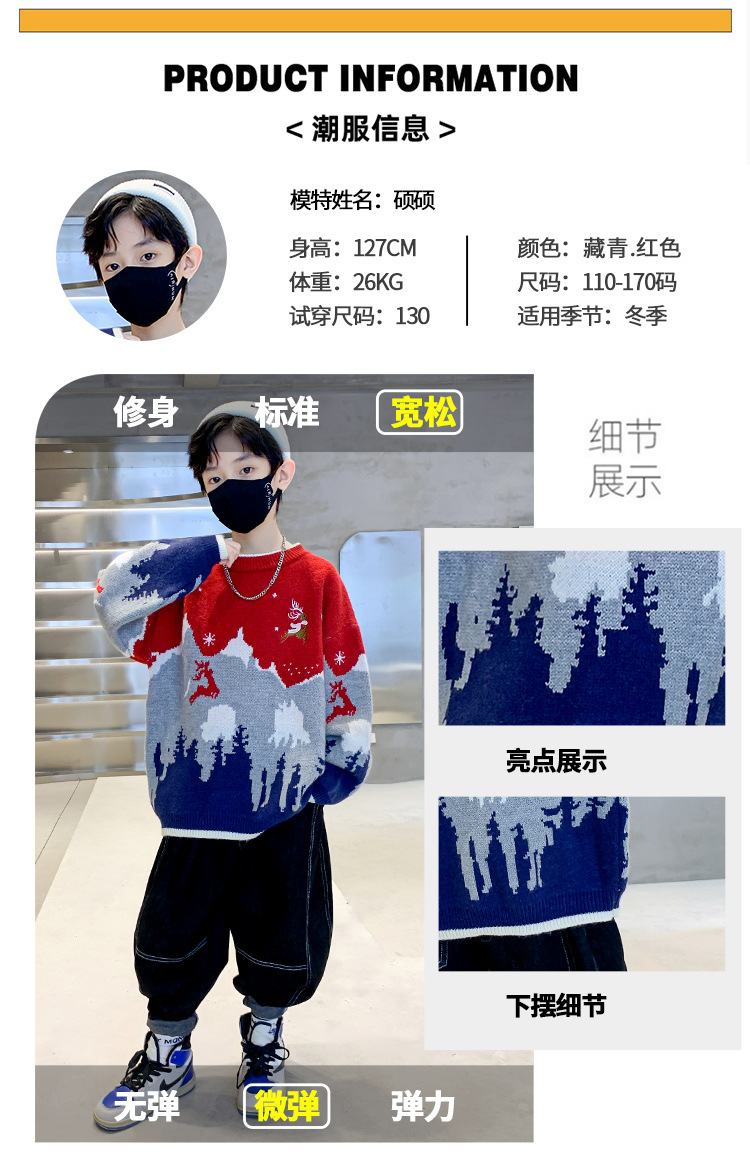 소년의 겨울 붉은 새해 스웨터 2024 새로운 어린이 서양식 튀김 거리 중다 어린이 두꺼운 따뜻한 니트웨어