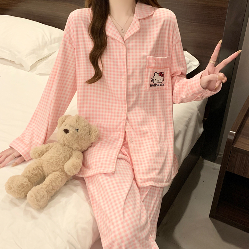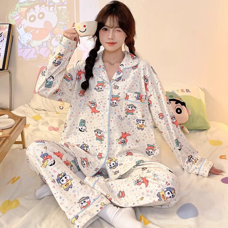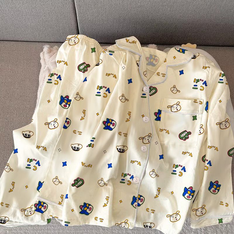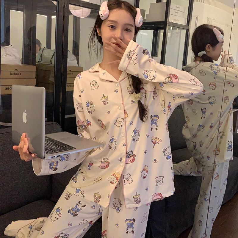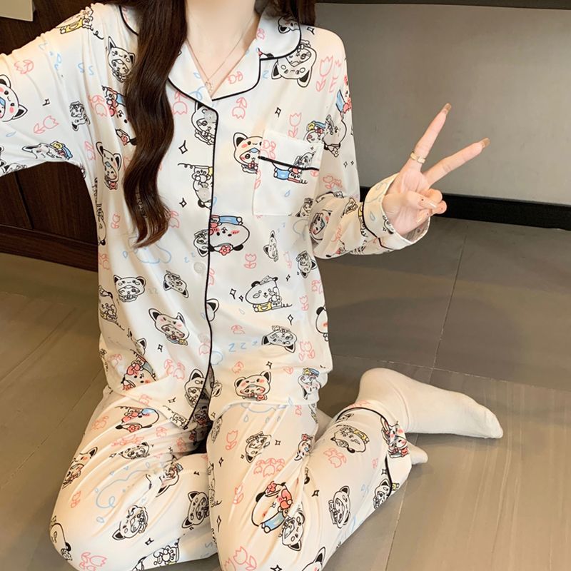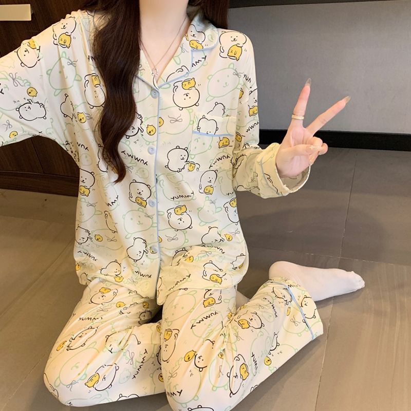 여성용 도매 잠옷, 레오파드 프린트, 레트로 스타일, 봄/가을, 달콤한 긴팔 긴바지, 루즈핏, 학생 기숙사 홈웨어 세트스토어 가기