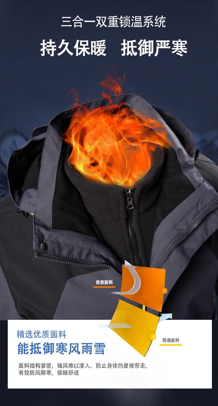 야외 마운틴 스타일 러싱 의류 남성용 3 대 1 커플의 분리 가능한 로커 내부 담요 방풍 등산 재킷