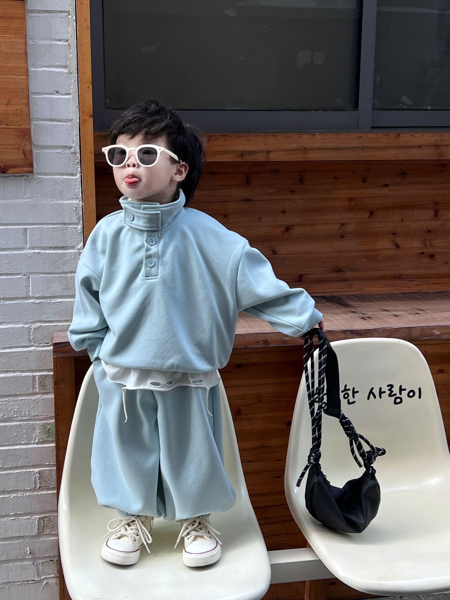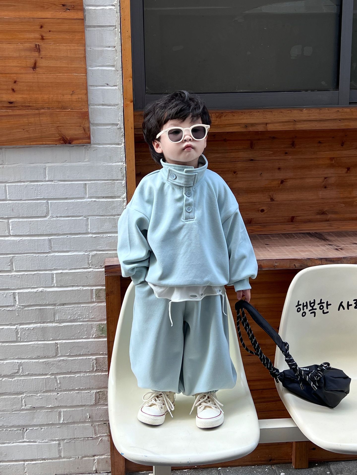 아동복 남아 가을옷 개성있는 스탠드 칼라 투피스 세트 아기 2025 신상 멋지고 세련된 옷 봄 가을스토어 가기