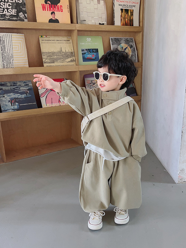 아동복 남아 가을옷 개성있는 스탠드 칼라 투피스 세트 아기 2025 신상 멋지고 세련된 옷 봄 가을