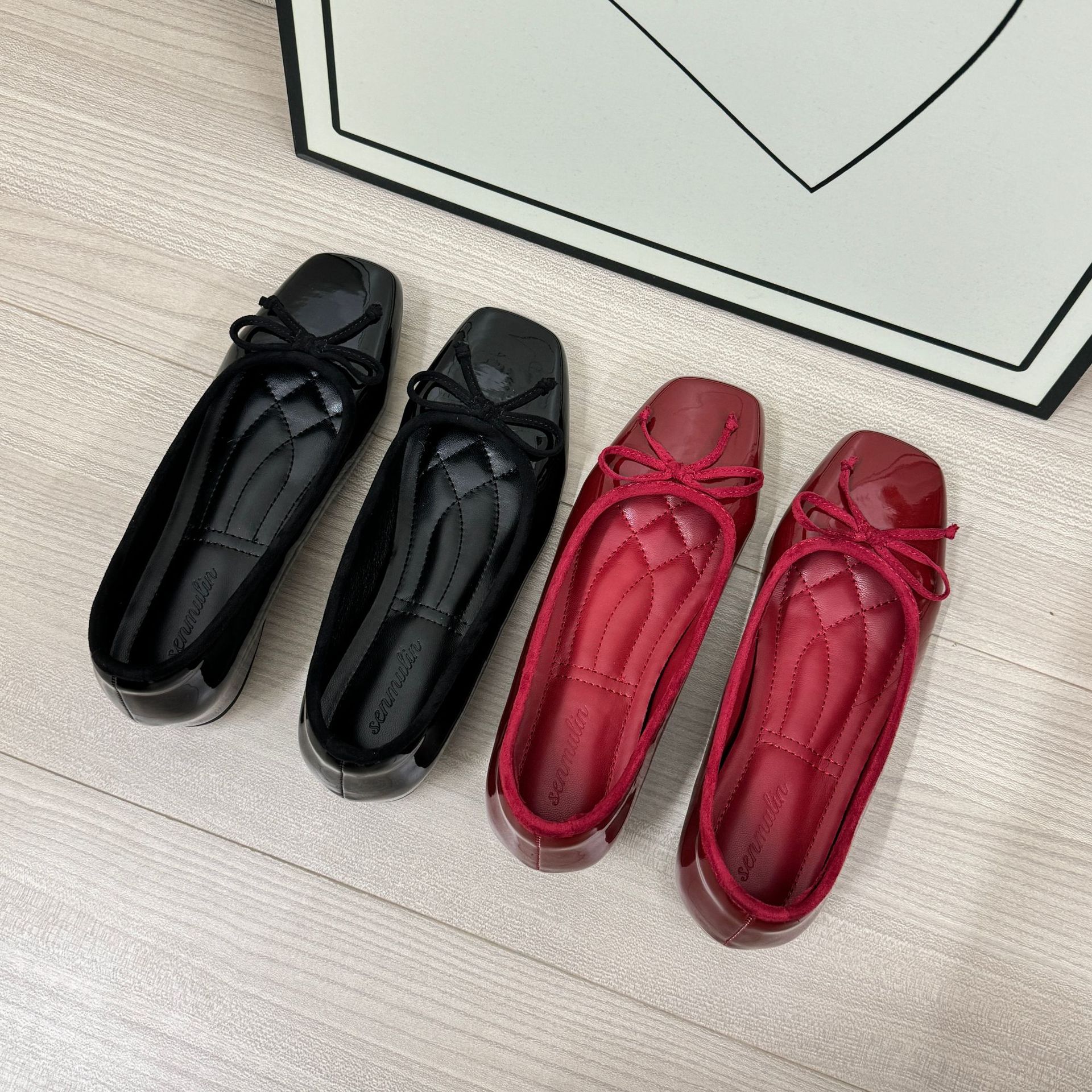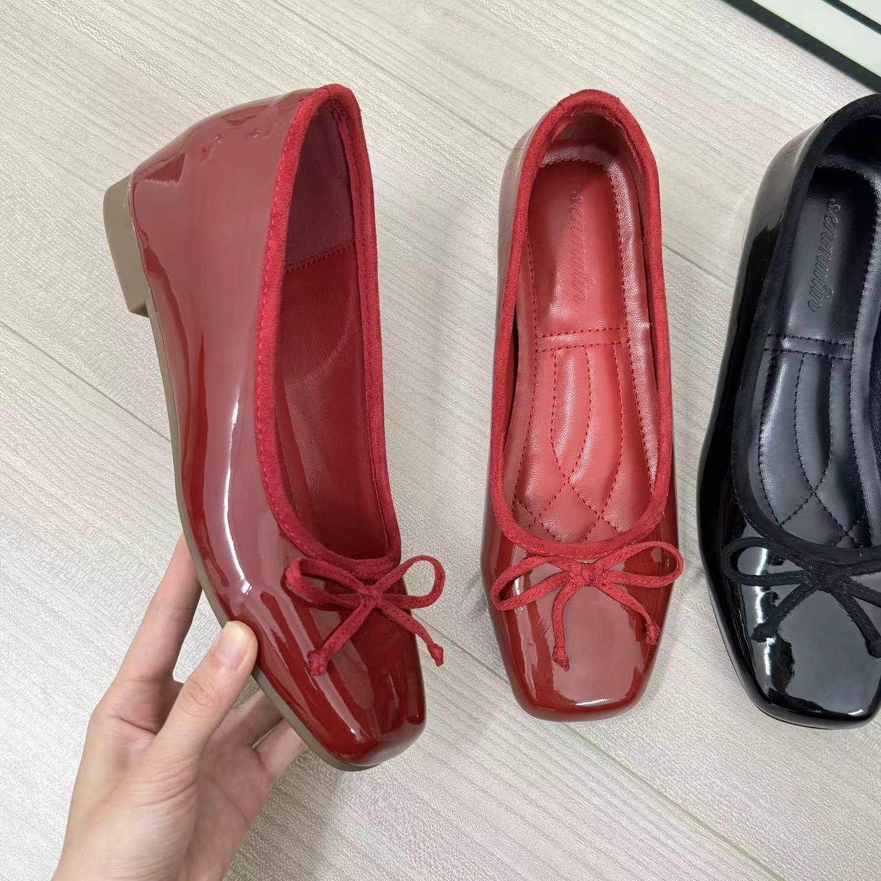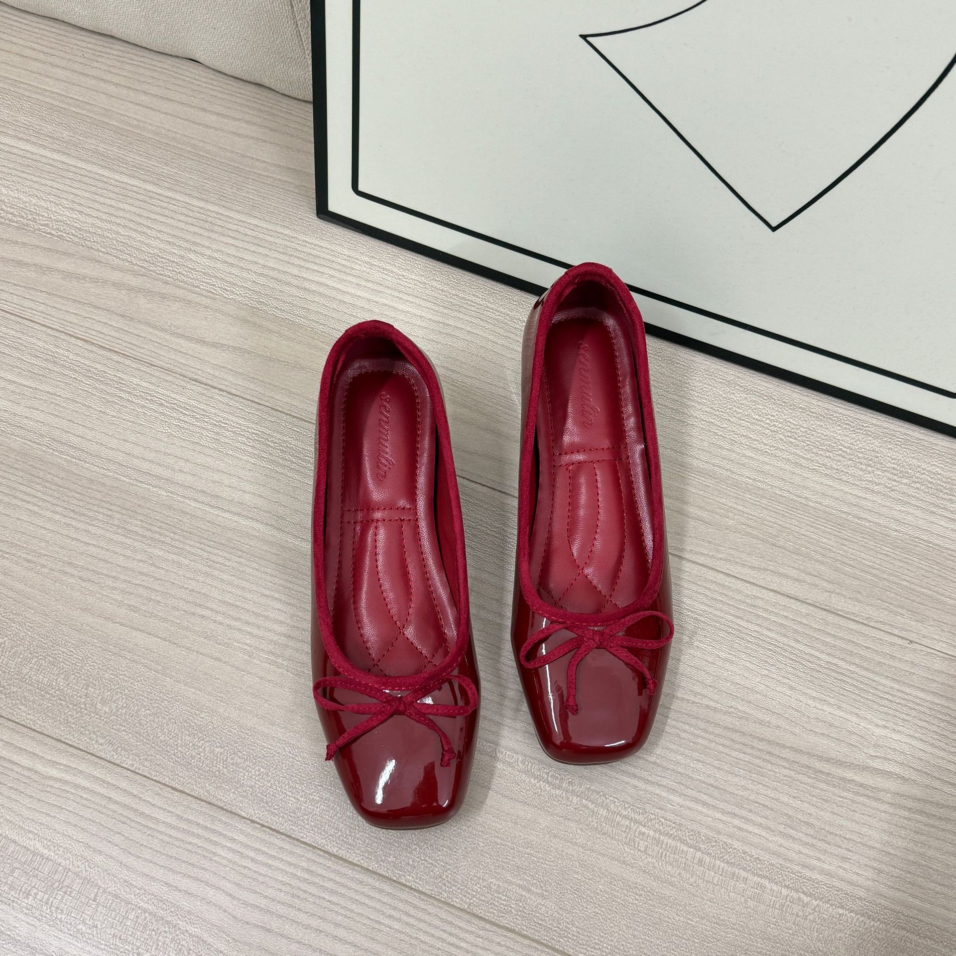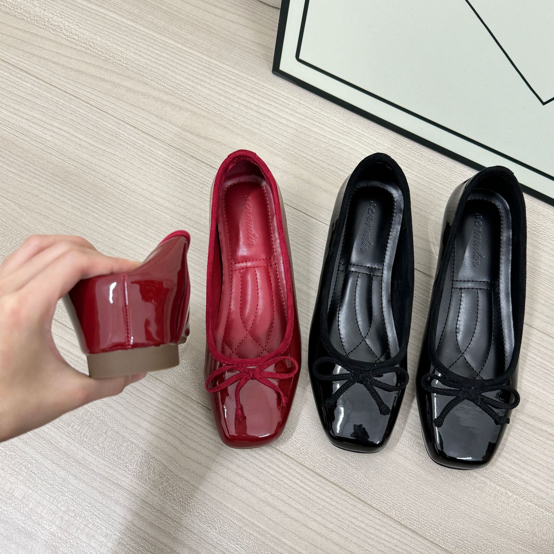 프랑스 스타일 작은 높이 높이 발레 신발 여성의 2024 여름 새로운 메리 제인 하이힐 레드 가죽 신발스토어 가기