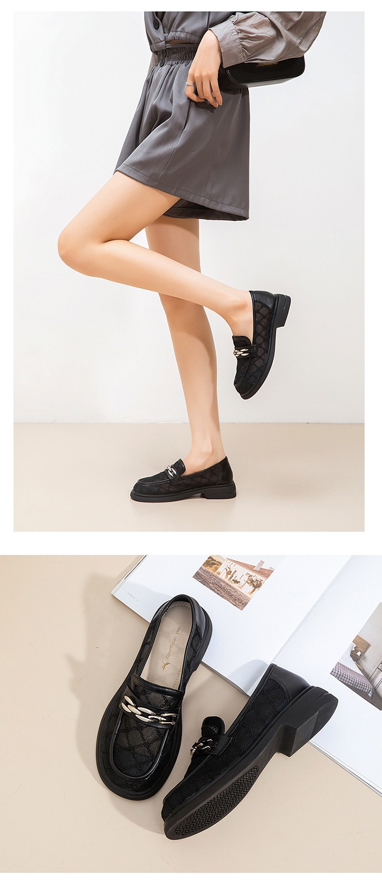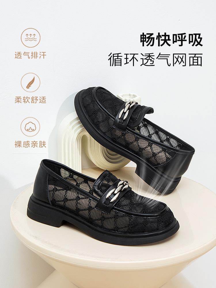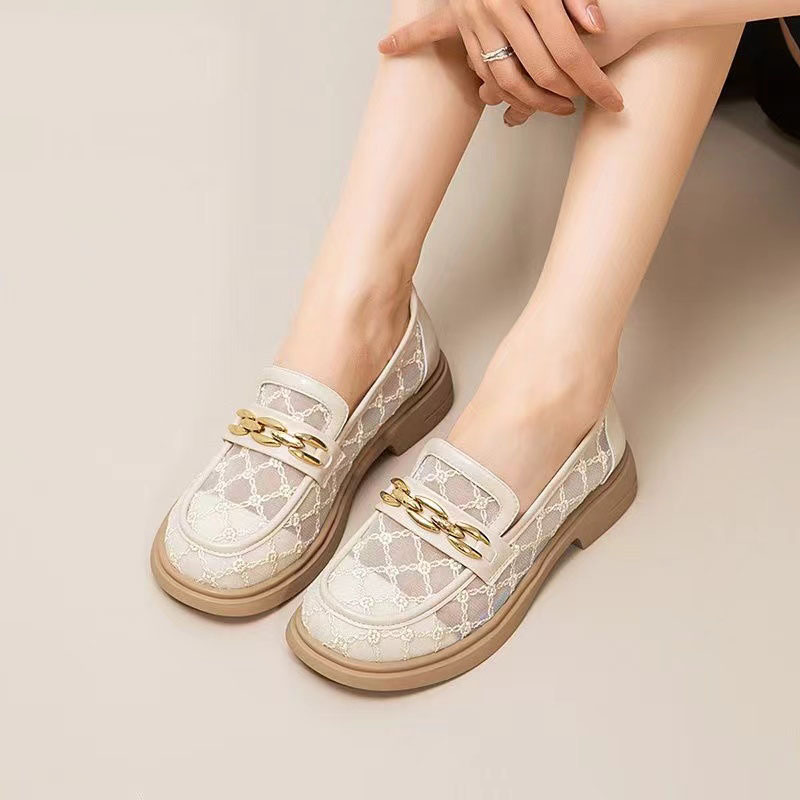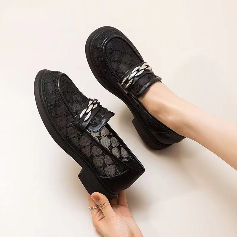 [폭발] 레이스 통기성 올매치 로퍼 여자 가을 2024 새로운 저굽 편안한 통근 얕은 입 싱글 레이어 신발스토어 가기