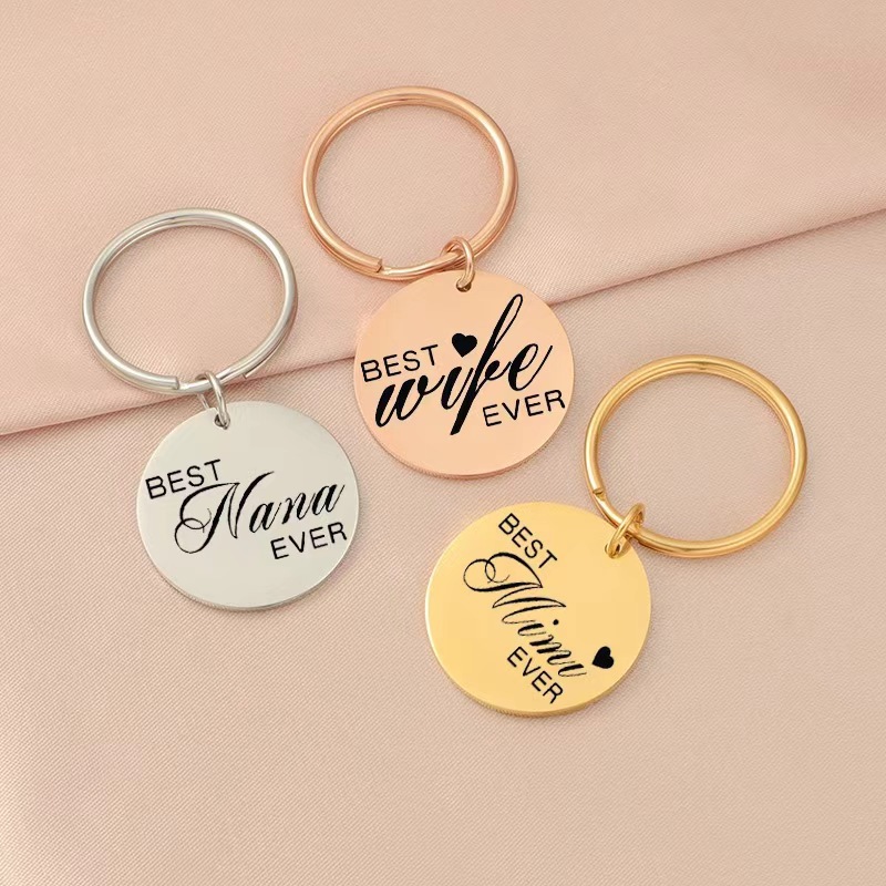 국경 간 재고 뜨거운 판매 거울 스테인레스 스틸 성격 간단한 키 체인 작은 태그 레이저 로고 장식 글자스토어 가기