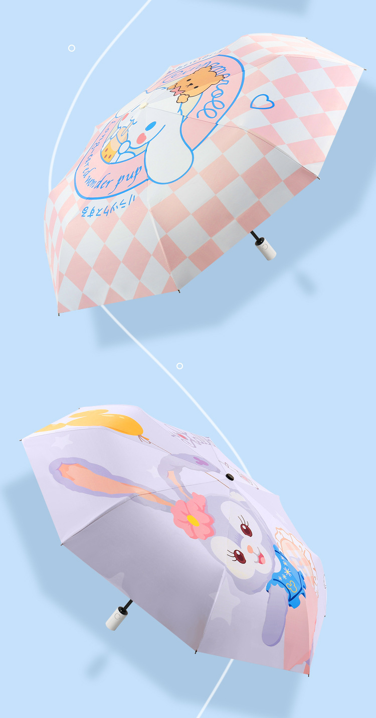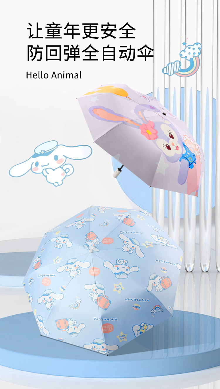 8단계 자동 우산, 블랙코팅, 햇빛 차단 및 방수 겸용, 시나몬롤 만화 캐릭터, 샤오홍슈 우산 도매