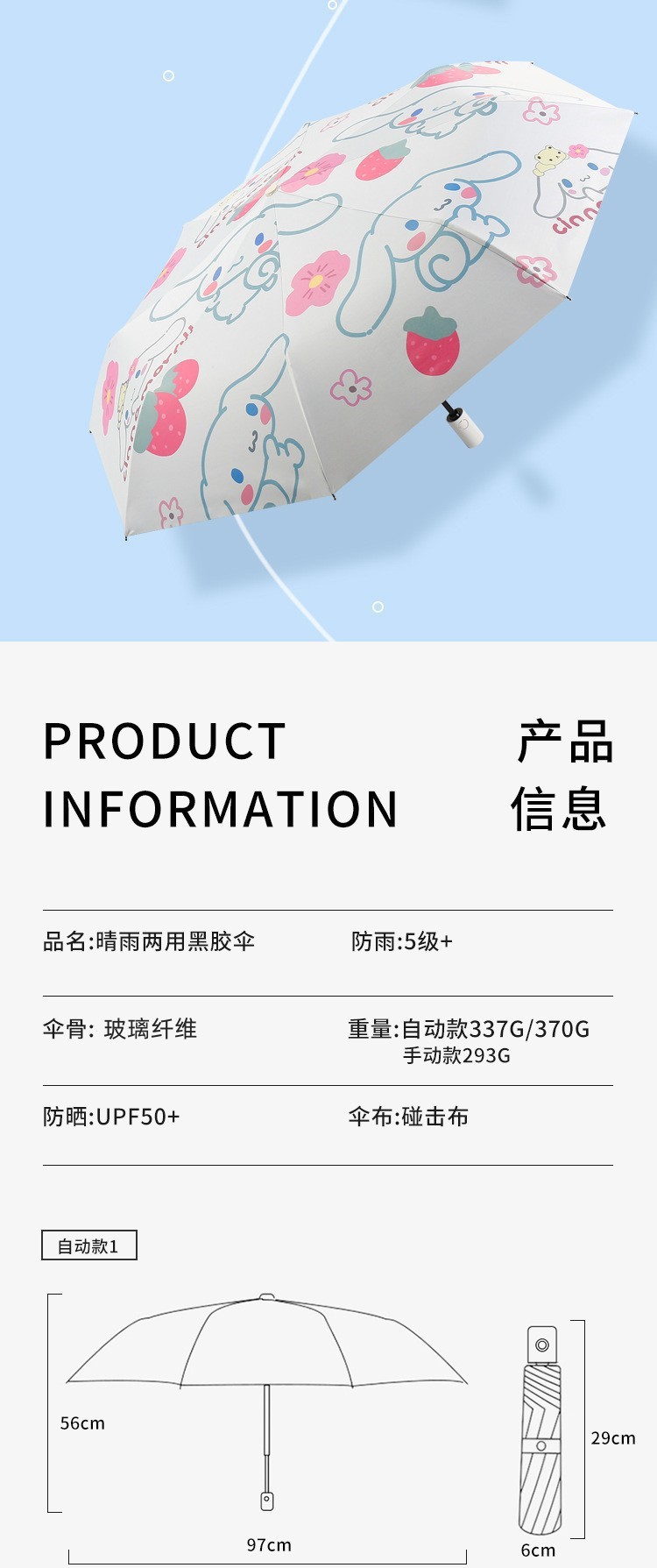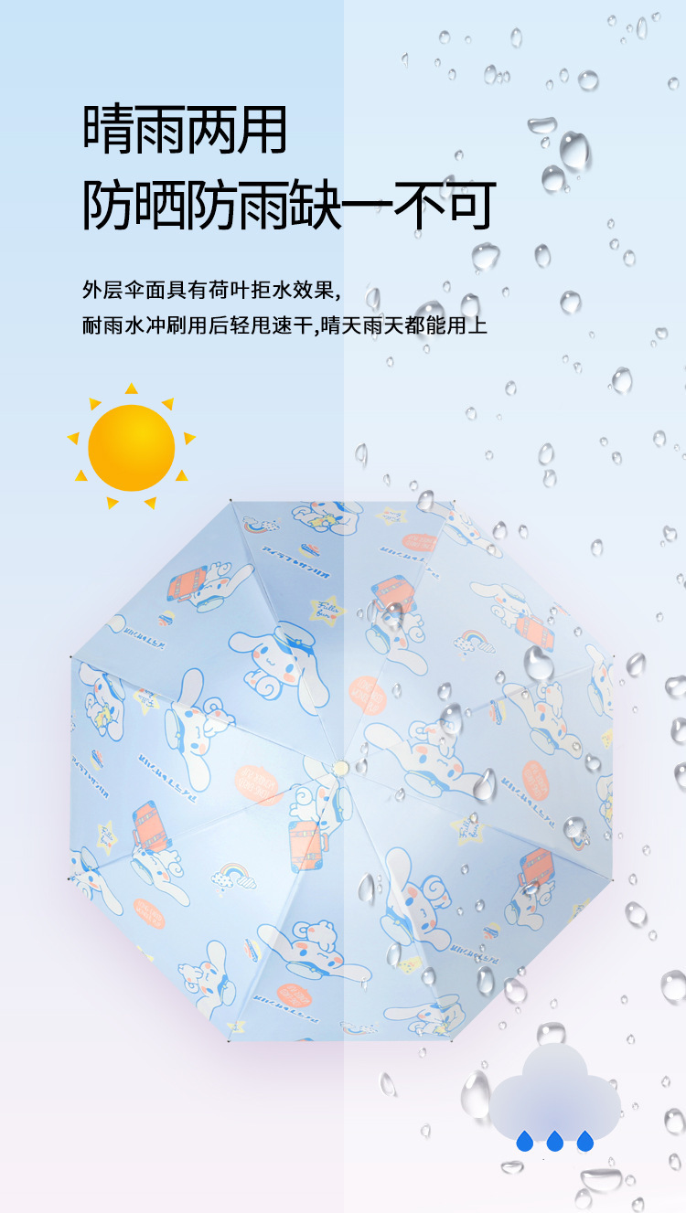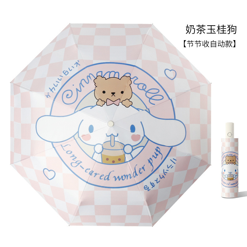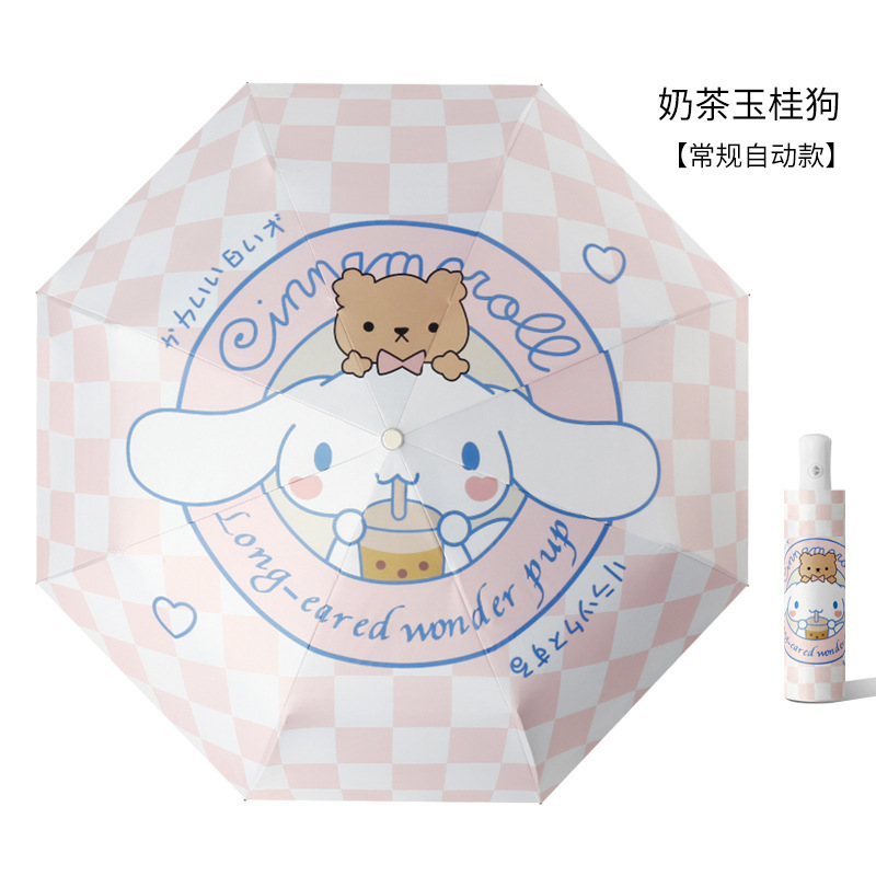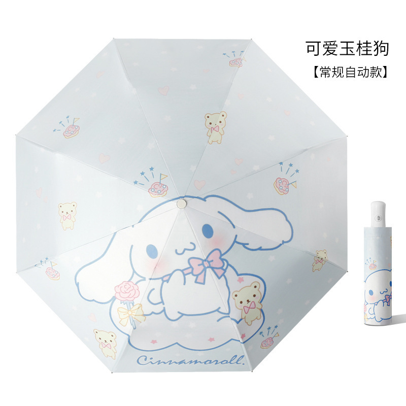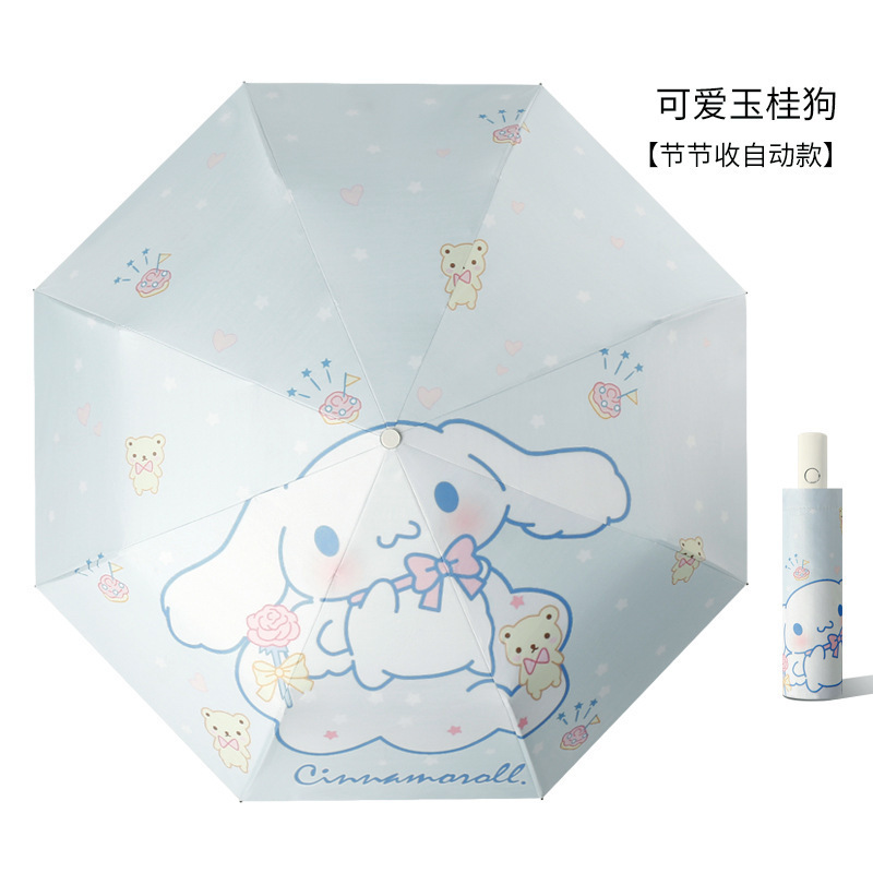 8 뼈 안티 리바운드 자동 우산 블랙 접착제 맑고 비 이중 목적 선 스크린 우산 유귀 개 만화 높은 색상 가치 도매