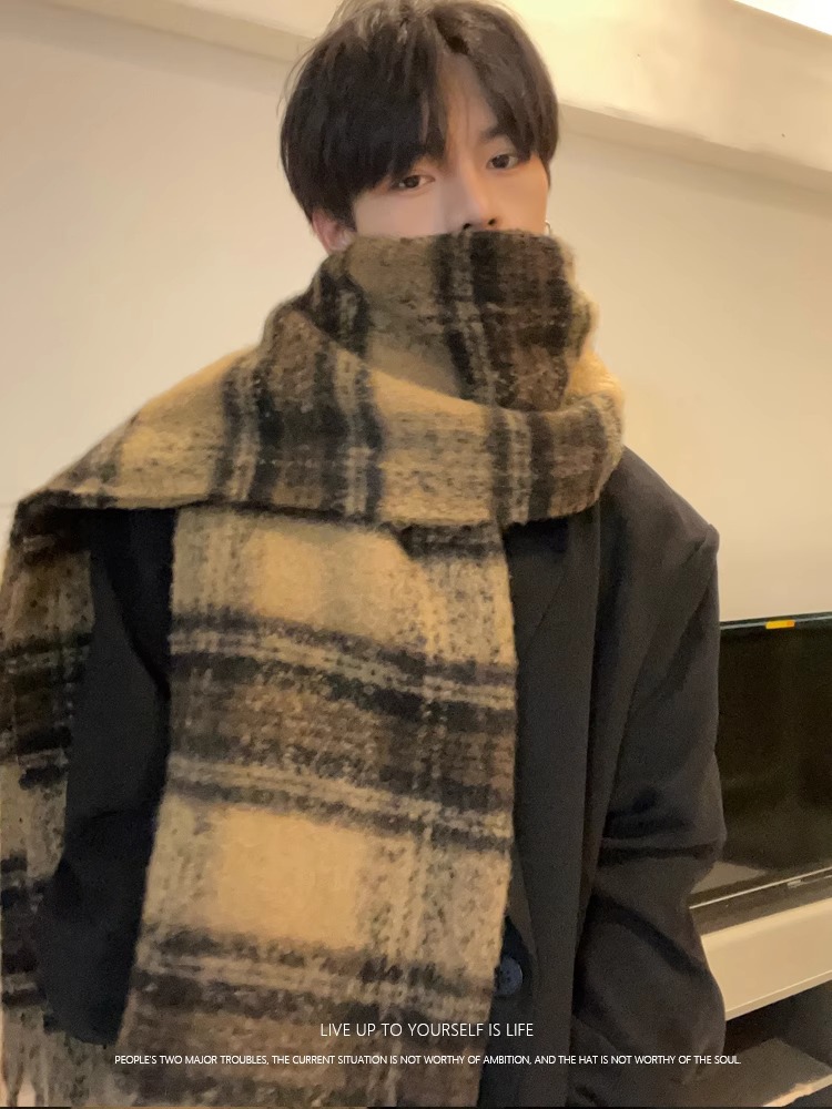 매일러드 스카프 복고풍 분위기 격자 무늬 스카프 여성 가을 겨울 한국 스타일 하이 엔드 두꺼운 따뜻한 목 목도리