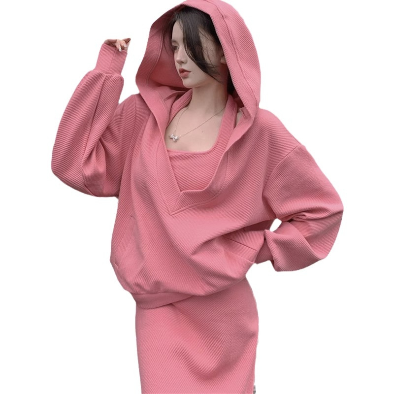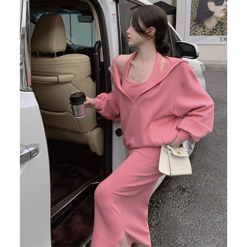 가을 새로운 스타일 서양식 나이를 줄이는 슬리밍 세트 여성 플러스 사이즈 스웨터 고기 2 피스 원피스 통통녀 여성 의류스토어 가기