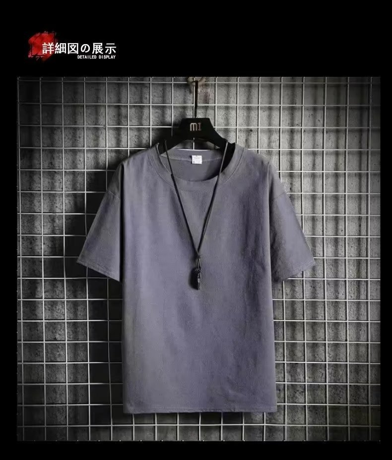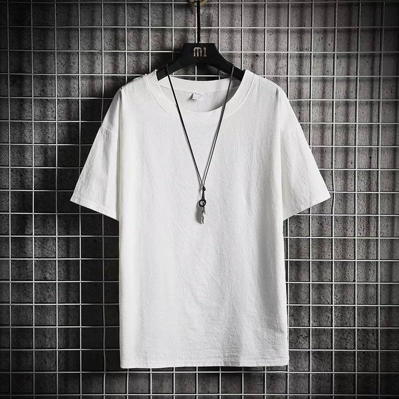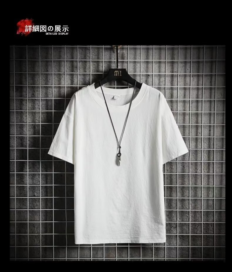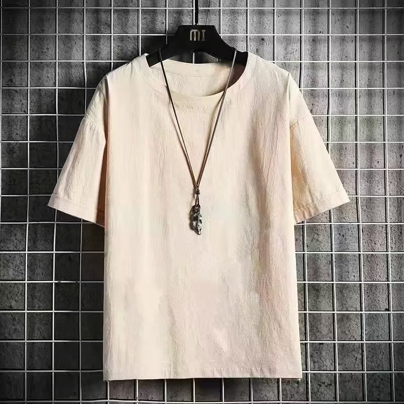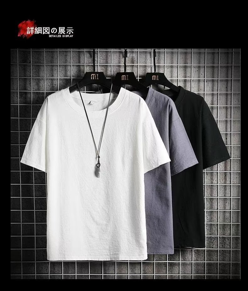 제조 업체 도매 모조 린넨 반팔 티셔츠 남성 여름 새로운 패션 브랜드 느슨한 모조 면화와 린넨 반팔 솔리드 컬러 티셔츠스토어 가기
