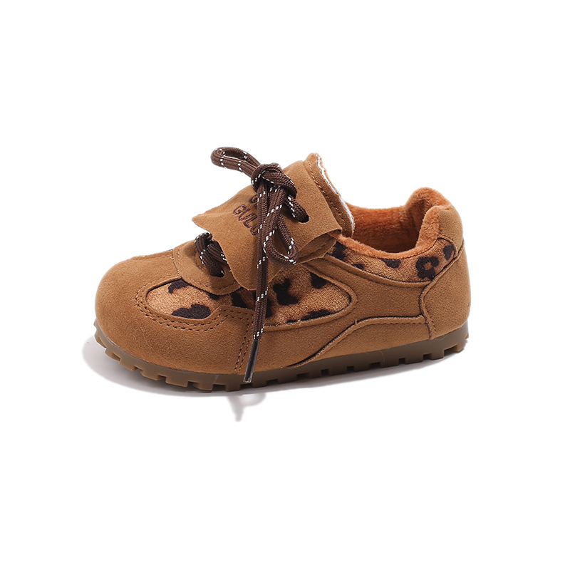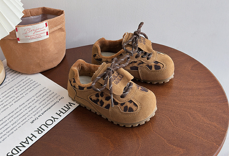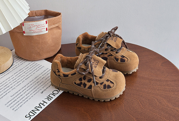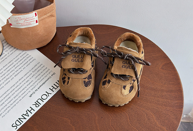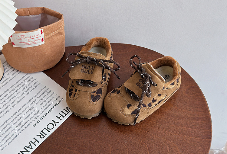 여아용 레오파드 프린트 운동화 2025 가을 겨울 신상 한국 스타일 남아용 부드러운 밑창 캐주얼 신발 아동용 플리스 안감 아가신발