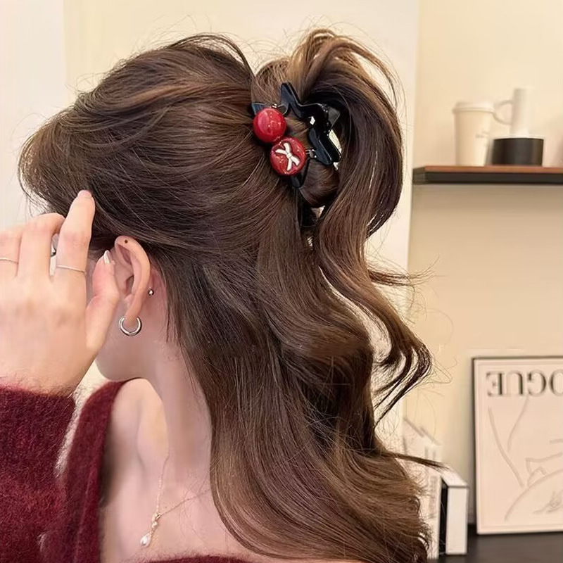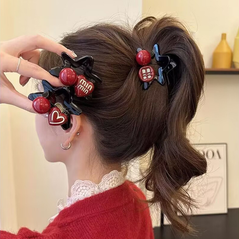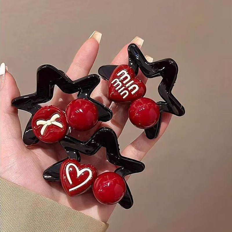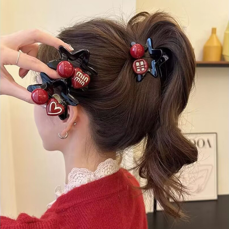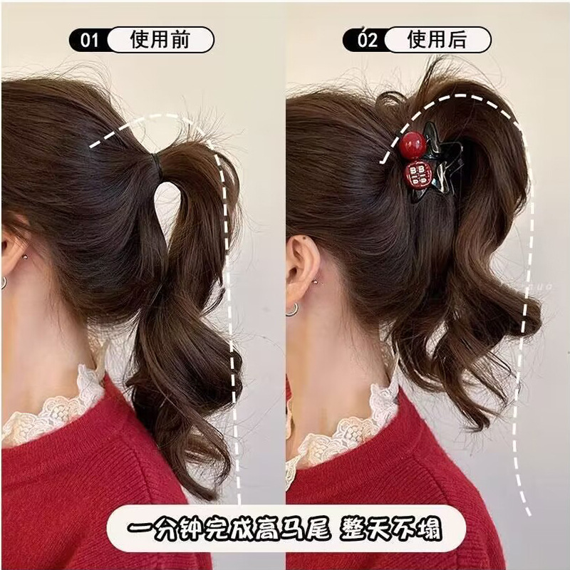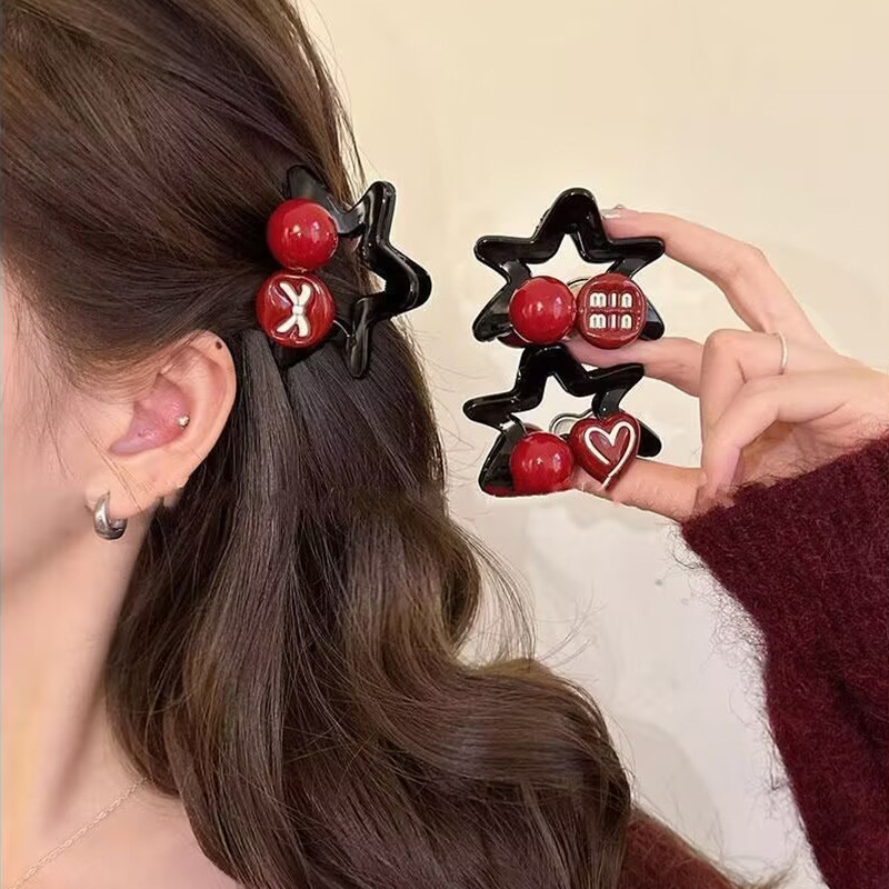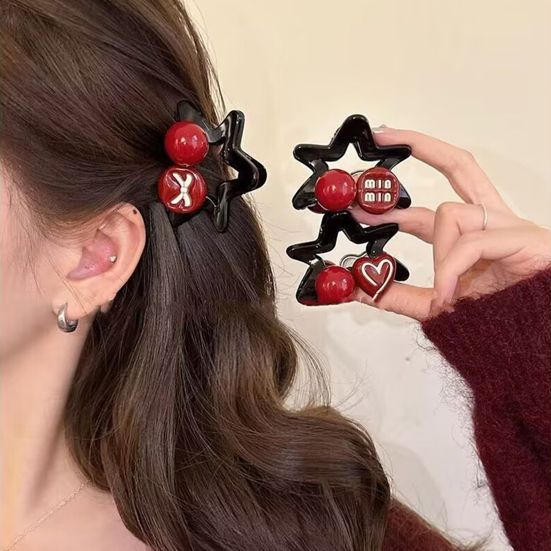 앙고라 레드 다섯개 별 하이 포니 테일 그립 클립 여성의 새로운 하이 엔드 헤드웨어 하프 헤어 상어 클립 헤어핀 백 헤드스토어 가기