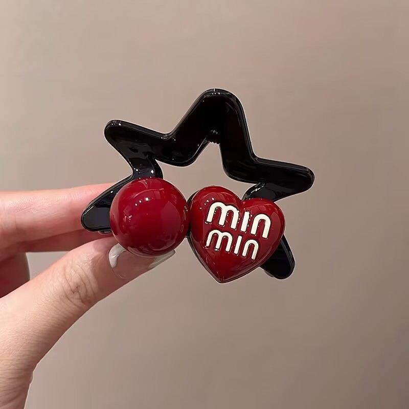 앙고라 레드 다섯개 별 하이 포니 테일 그립 클립 여성의 새로운 하이 엔드 헤드웨어 하프 헤어 상어 클립 헤어핀 백 헤드