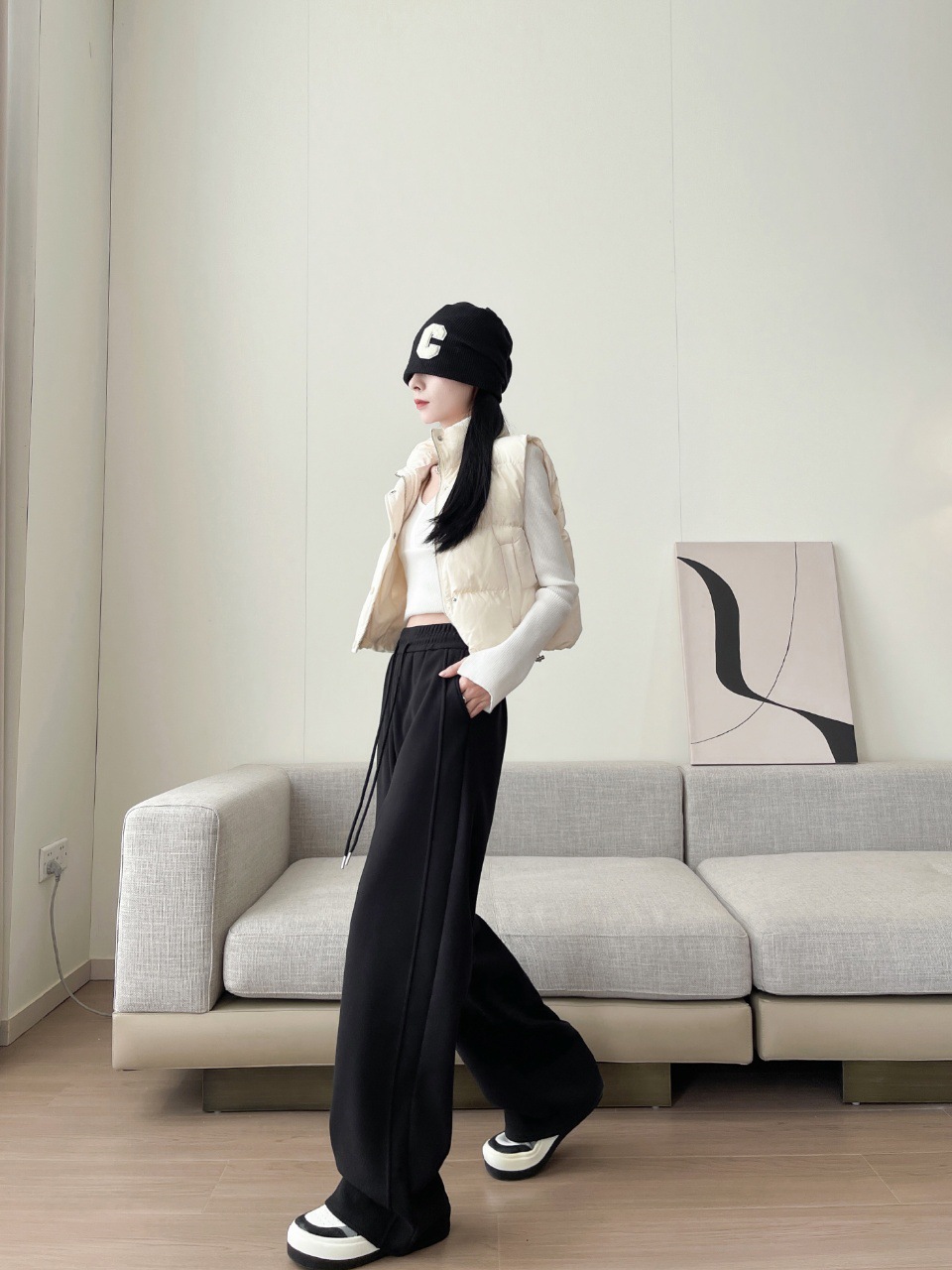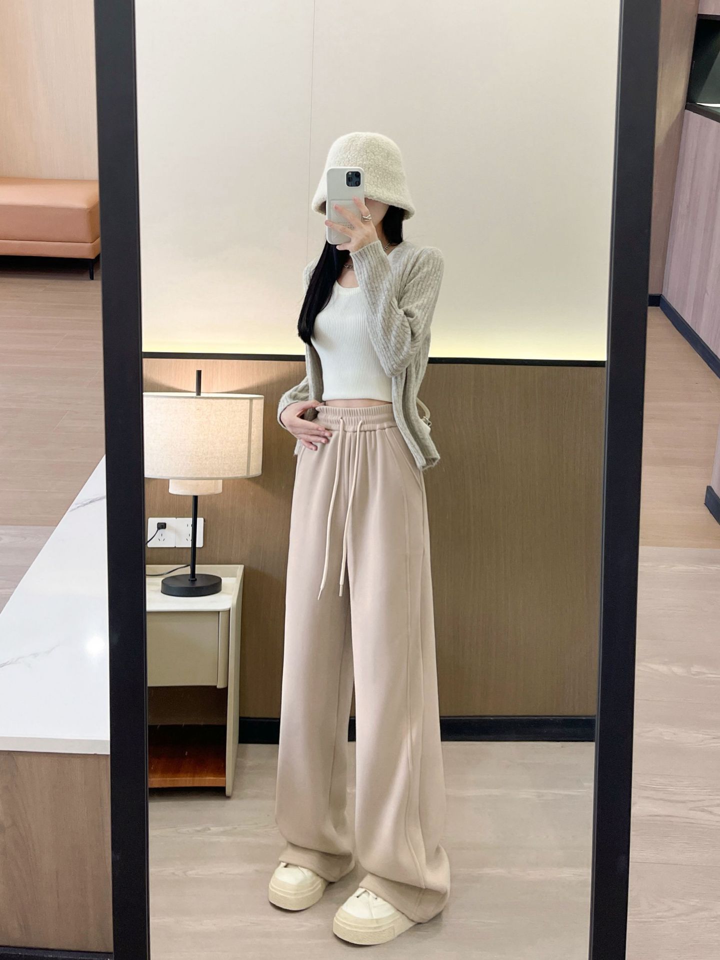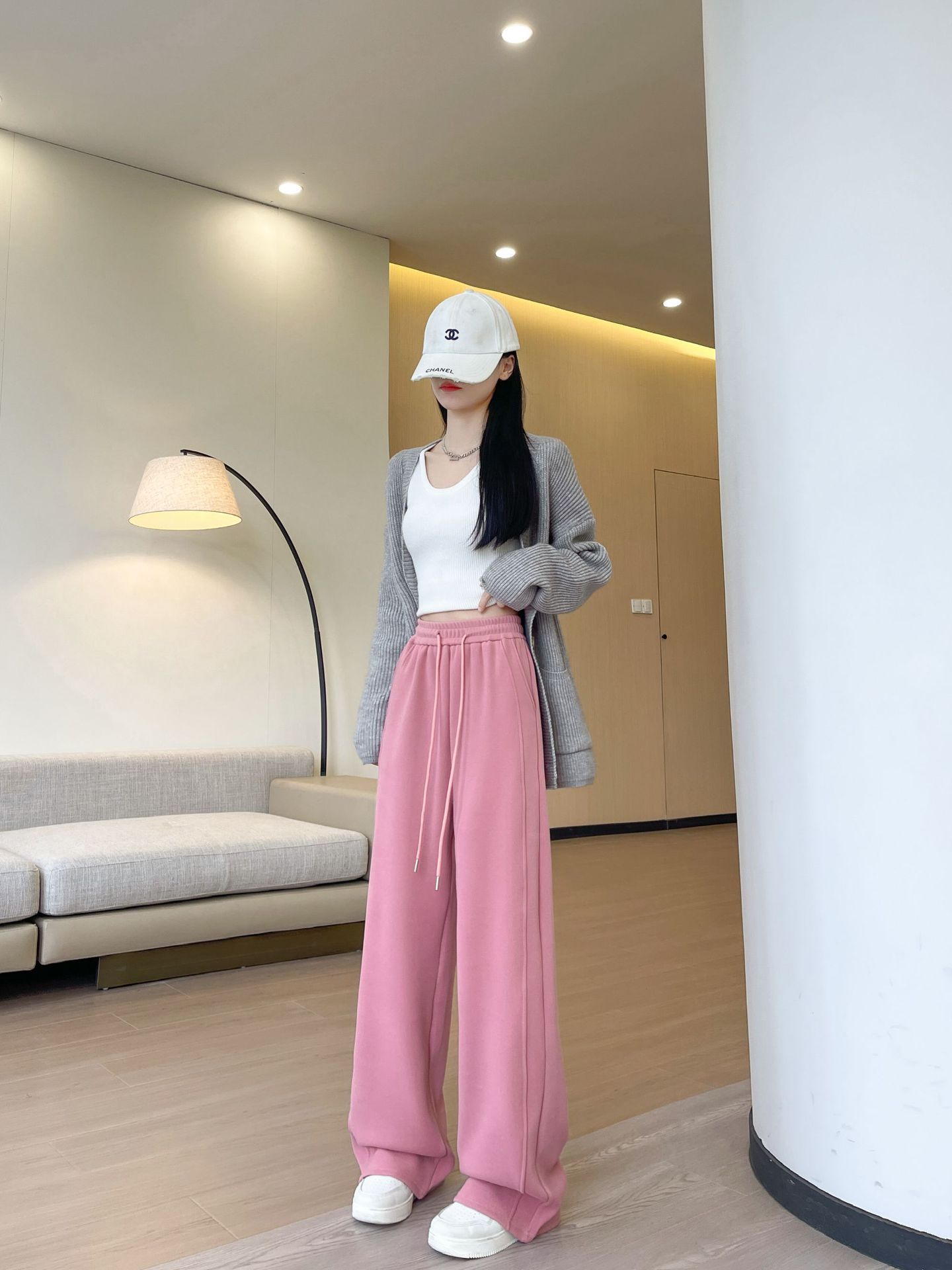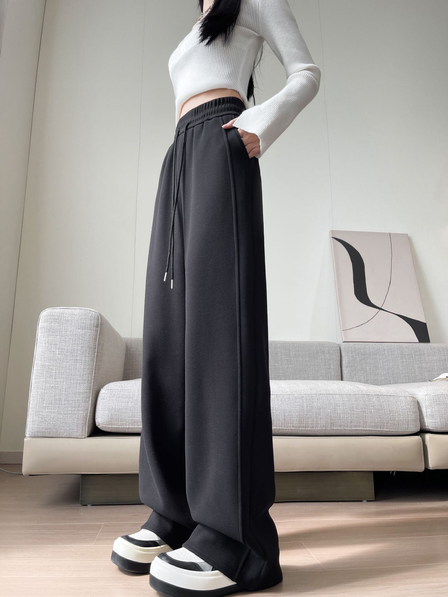 두꺼운 양모와 실크 방풍 바지 여성용 2025 가을 겨울 신상 루즈핏 하이웨이스트 스트레이트 캐주얼 플러스 사이즈 와이드 팬츠스토어 가기