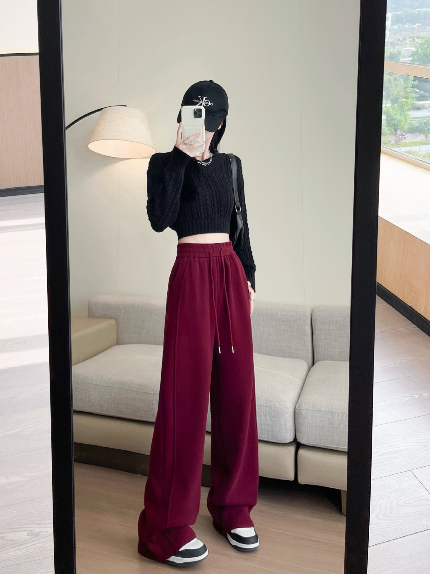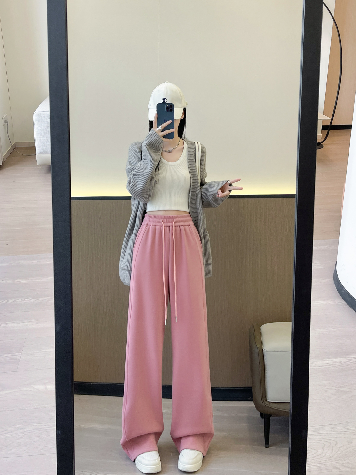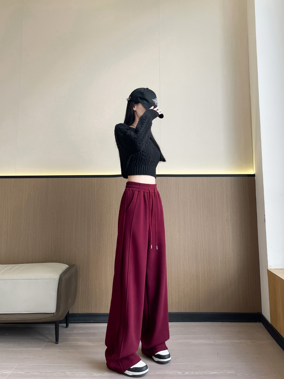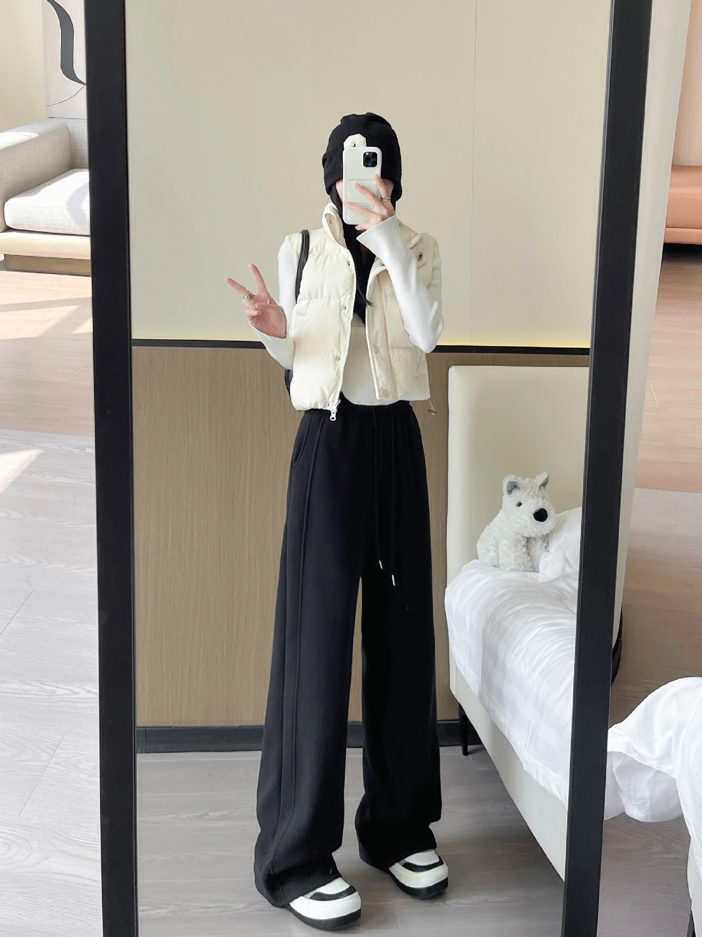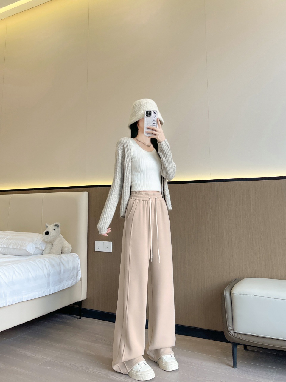 두꺼운 양모와 실크 방풍 바지 여성용 2025 가을 겨울 신상 루즈핏 하이웨이스트 스트레이트 캐주얼 플러스 사이즈 와이드 팬츠스토어 가기
