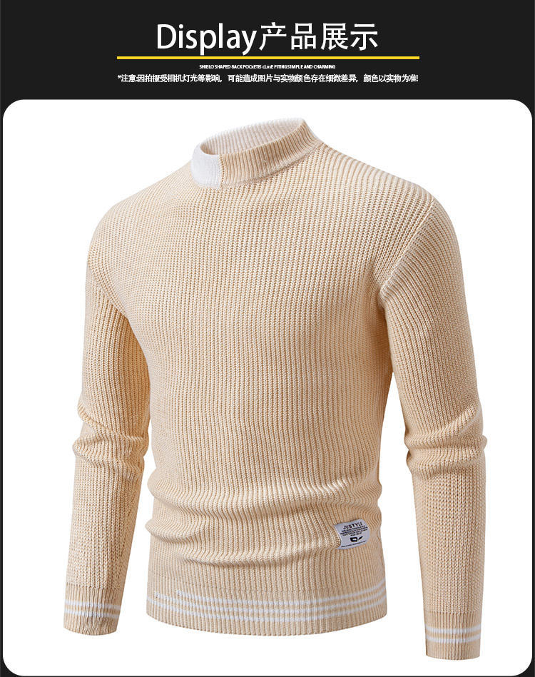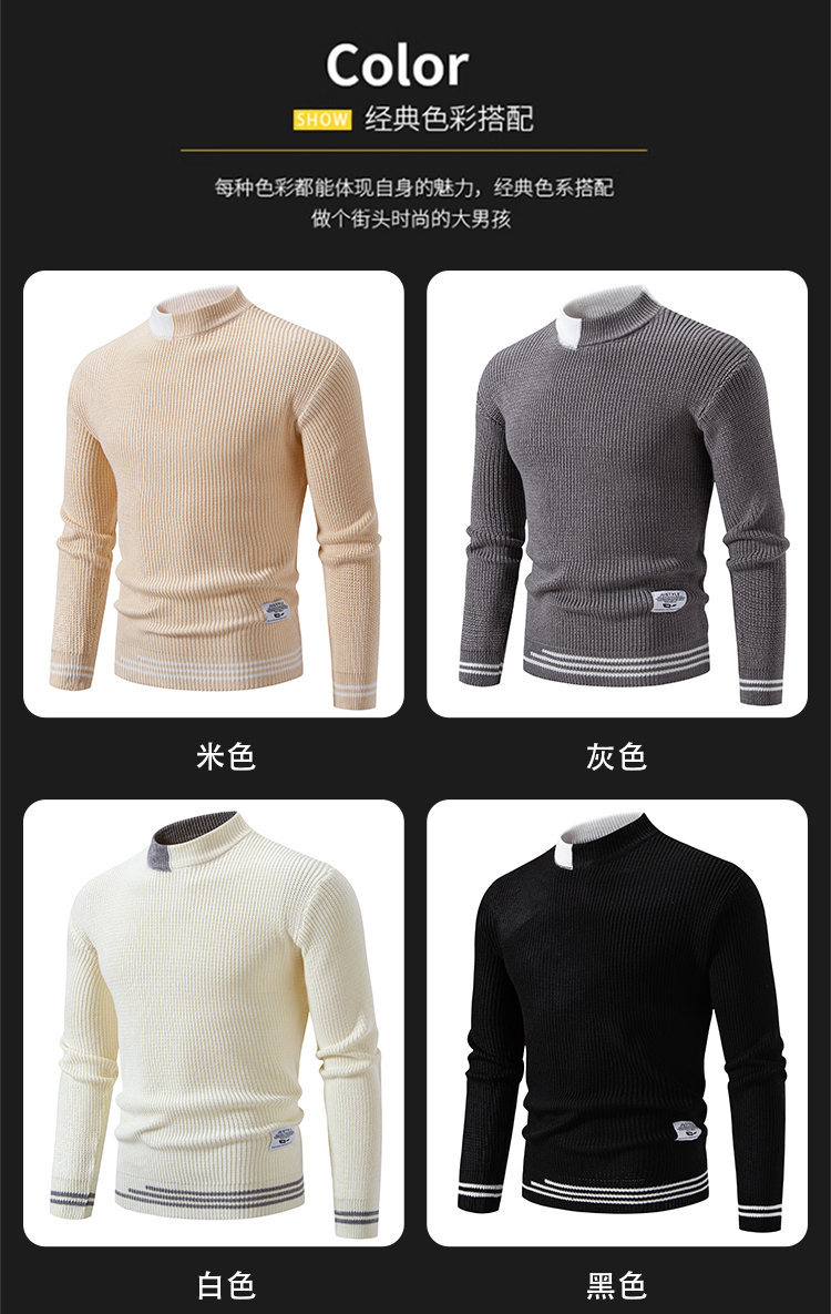 아마존 대외 무역 새로운 남자 하프 하이 칼라 대비 컬러 스티칭 캐주얼 스웨터 니트 스웨터 남자 탑