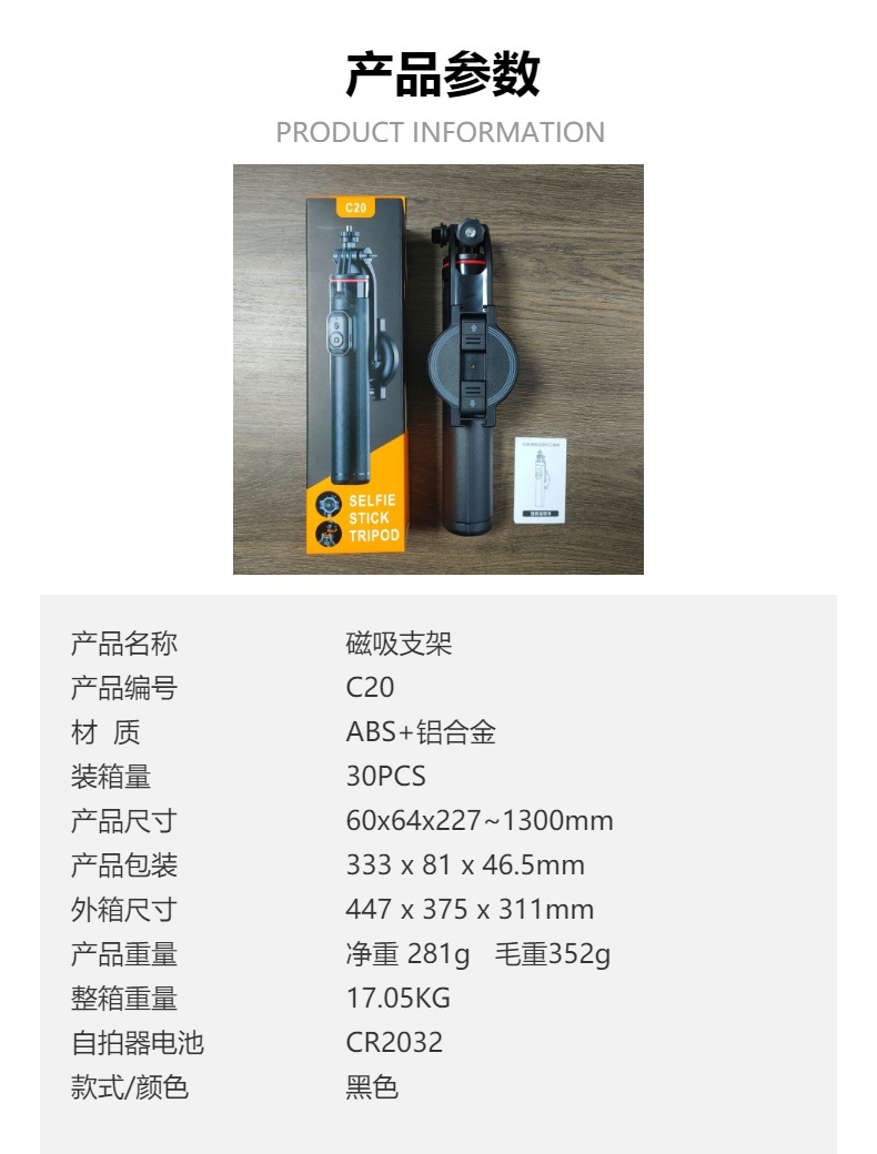 C20 휴대폰 자석 셀카봉 여행용 휴대용 확장형 알루미늄 합금 휴대폰 거치대 라이브 사진 촬영 삼각대