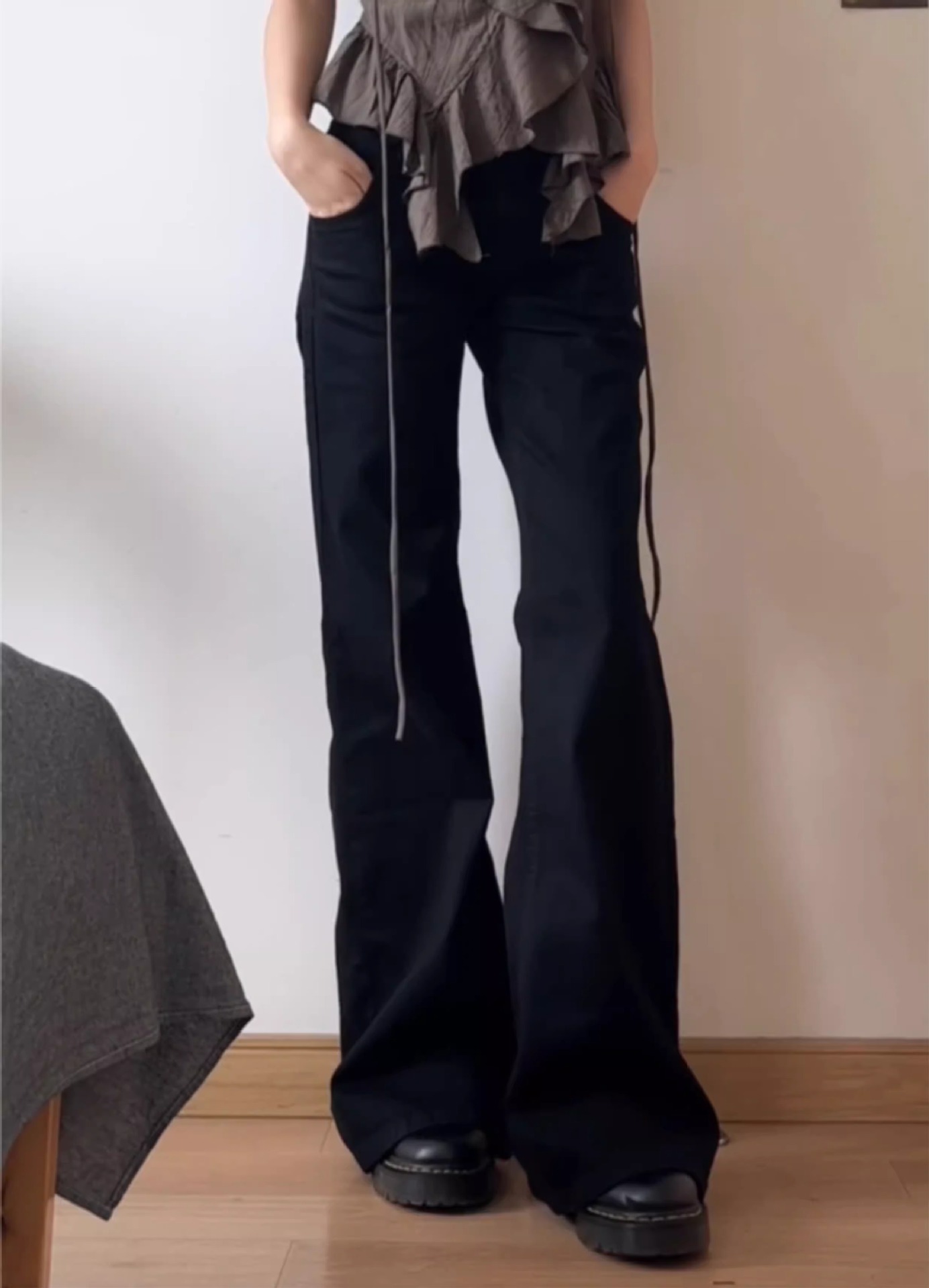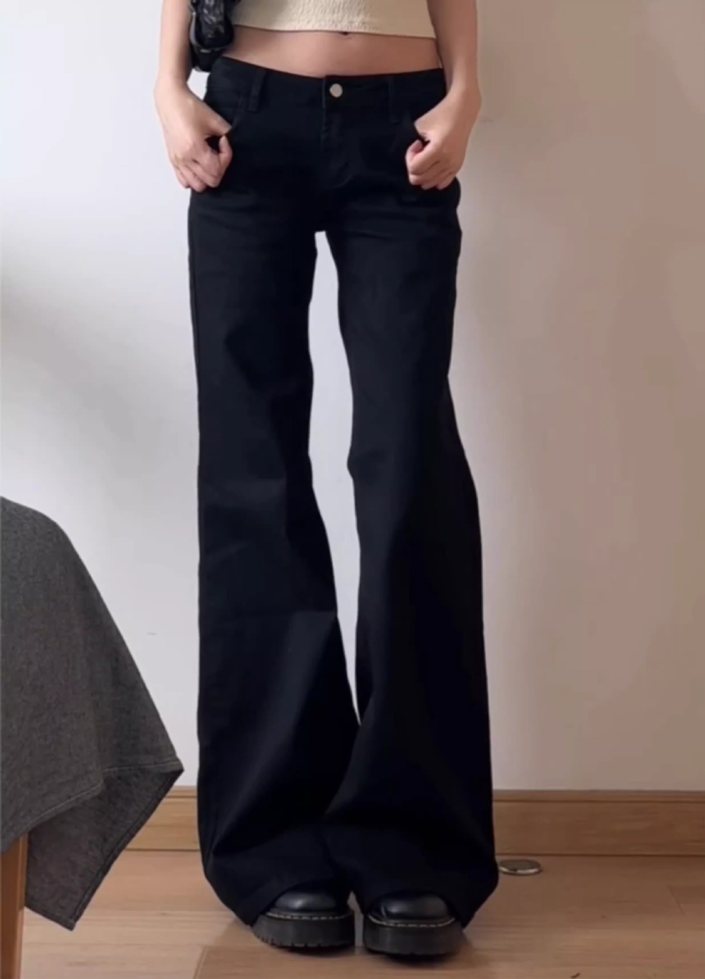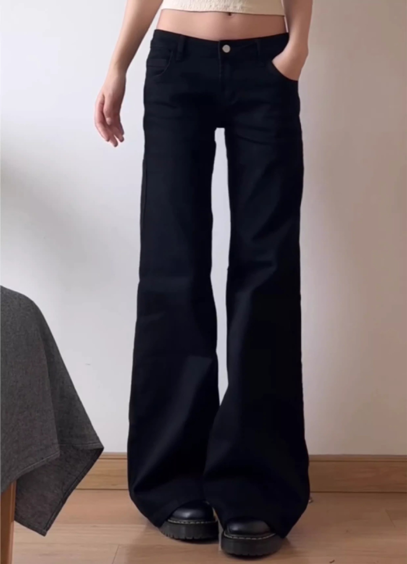 플러스 사이즈 아메리칸 스타일 핫 걸 블랙 낮은 허리 넓은 다리 슬림 청바지 여자 이른 가을 느슨한 올매치 스트레이트 바지스토어 가기
