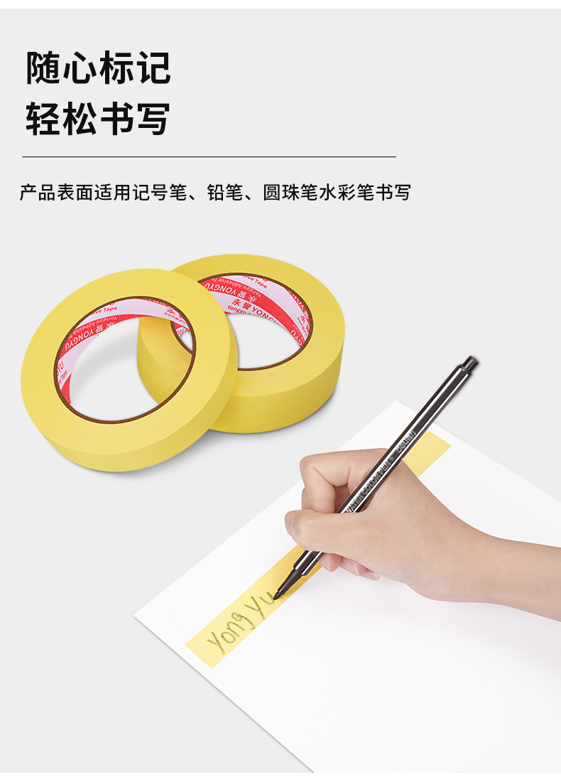 노란색 마스킹 종이 길이 50 미터 세라믹 타일 재봉 자동차 페인트 마스킹은 접착제를 남기지 않고 찢을 수있는 마스킹 테이프가 될 수 있습니다스토어 가기