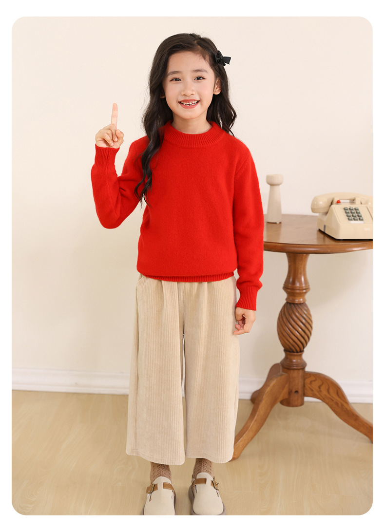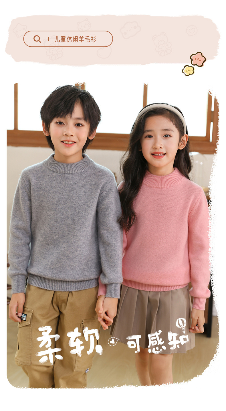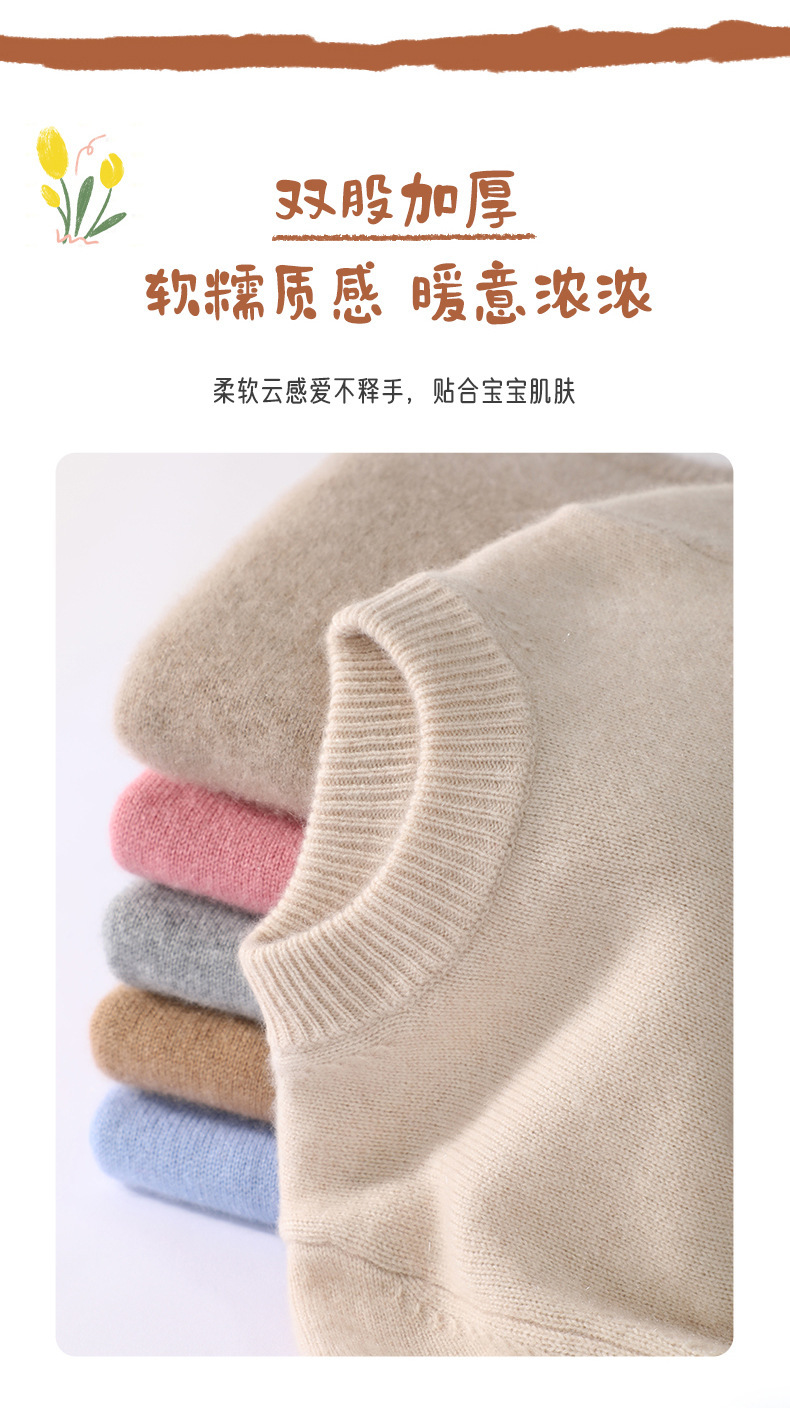 [머리카락의 한 세대] 어린이 가을과 겨울 순수 양모 7 핀 두껍게 된 세미 하이 칼라 스웨터베이스 스웨터