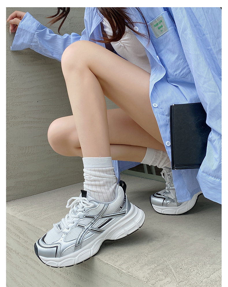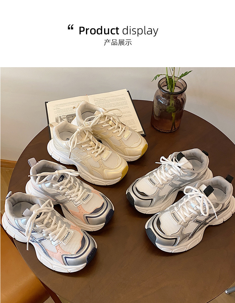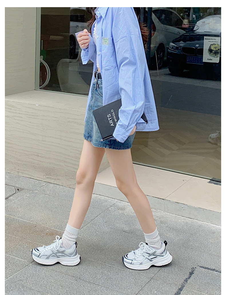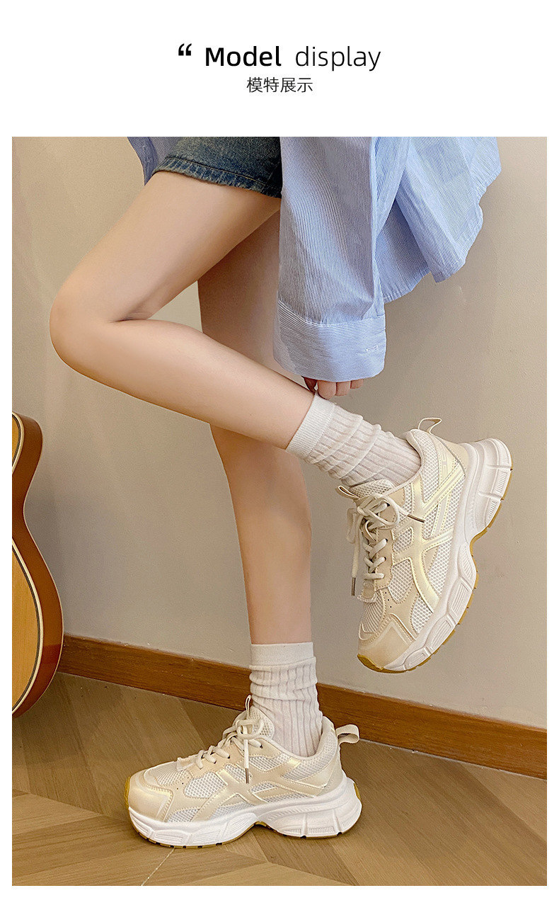 두꺼운 밑창 경량 복고풍 높이 증가 부드러운 밑창 운동화 여성의 여름 2024 새 발-작은 홍콩 스타일 파리 아빠 신발스토어 가기