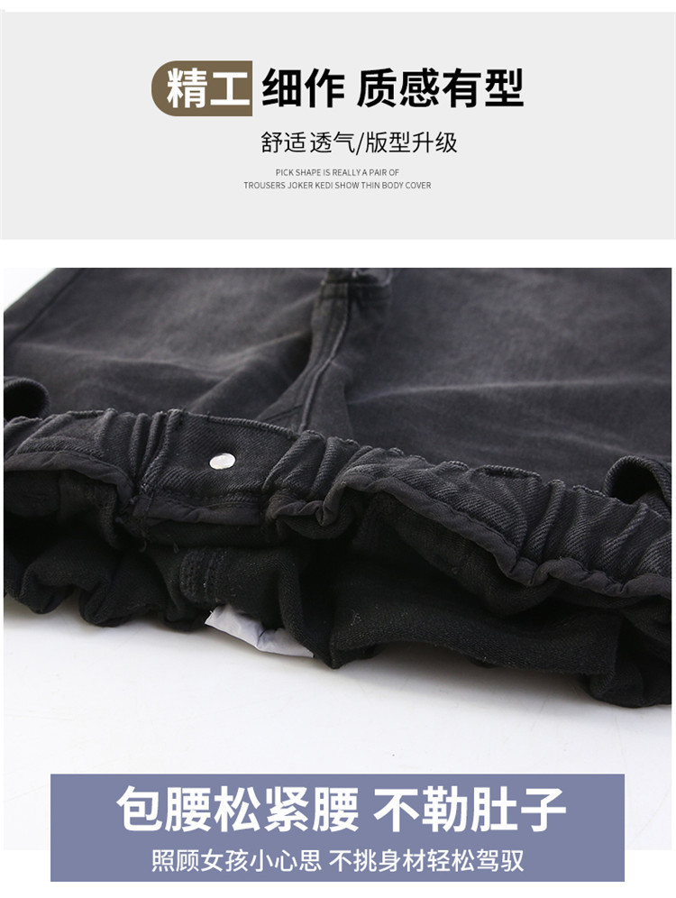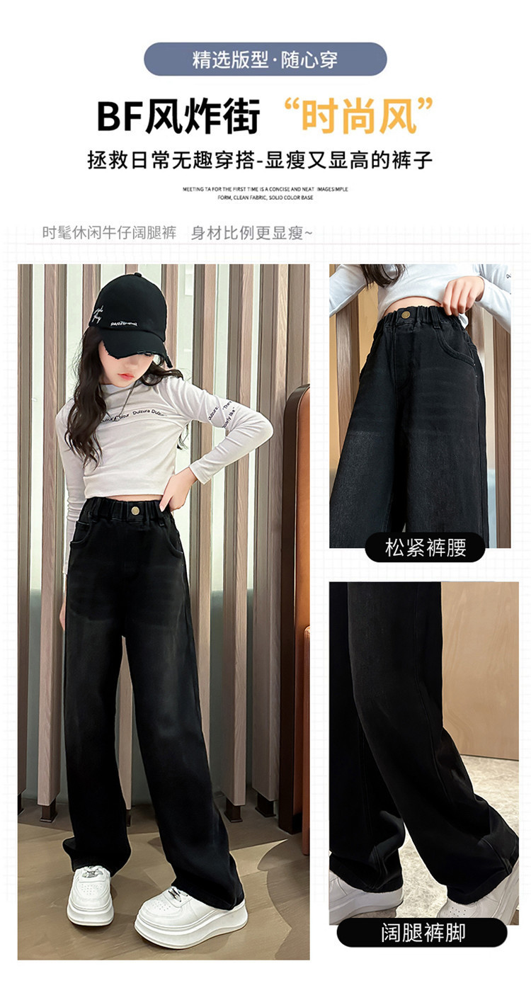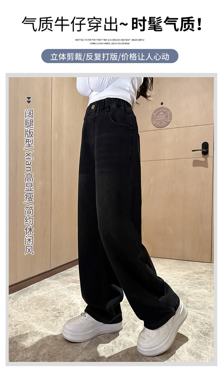 2024 겨울 새 여자 기모 바지 한국식 서양식 뒷주머니 와이드 레그 청바지 어린이 원피스 양털 스트레이트 바지스토어 가기