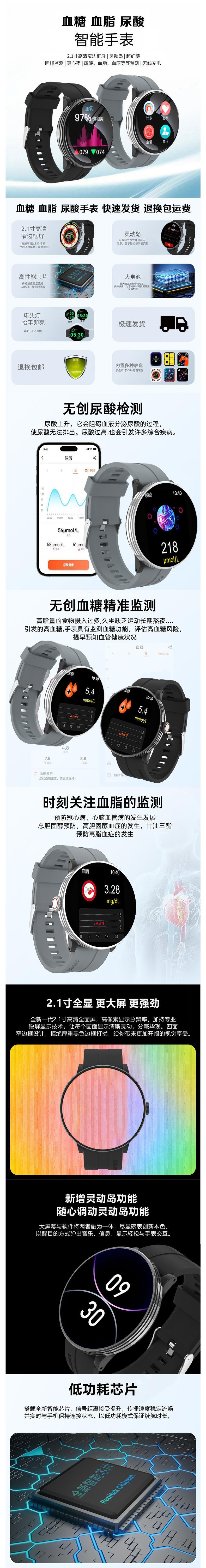 스마트 팔찌 시계 전화 통화 심장 박동 혈압 바늘 혈당 요산 혈액 산소 무료 블루투스