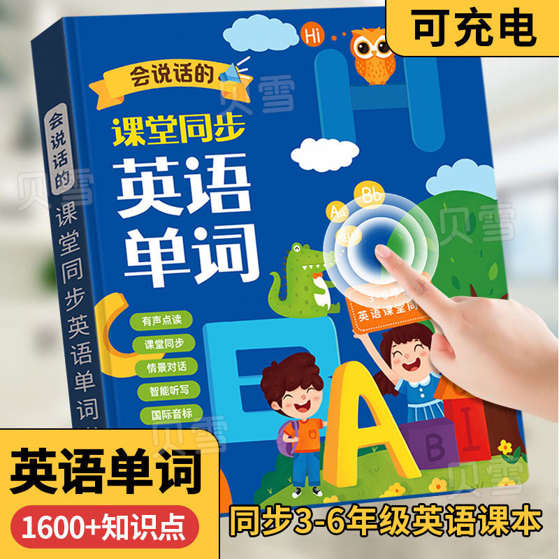 • [충전식 모델] 새로운 Beibei 영어 단어 동기화 북 (파란색 표지)