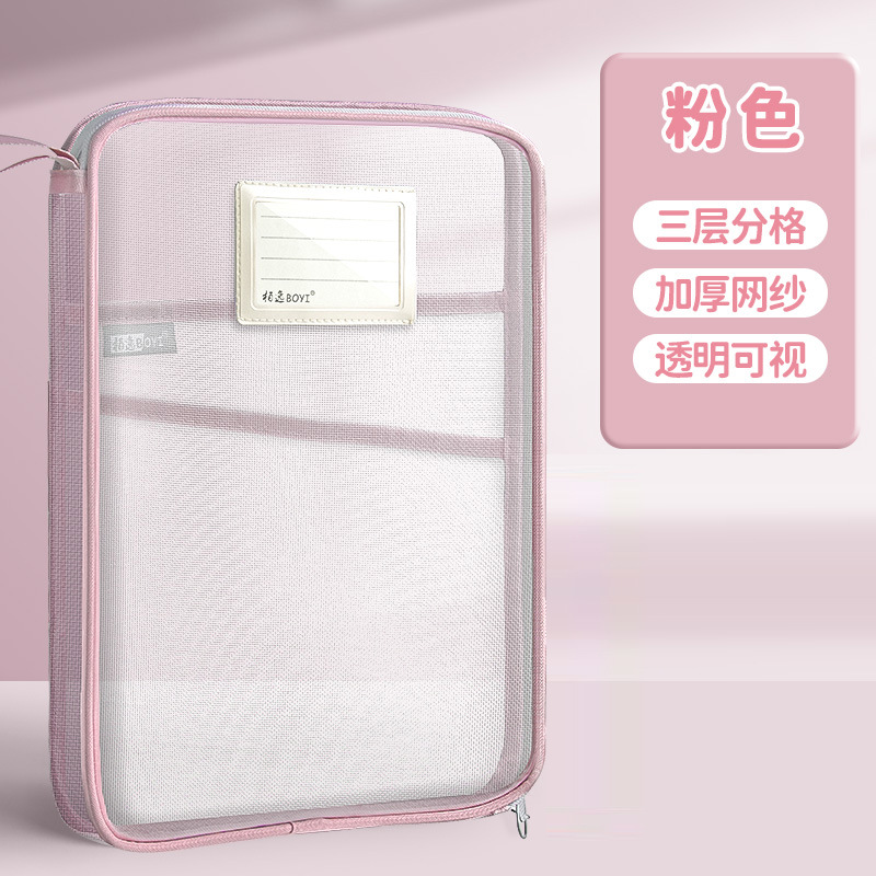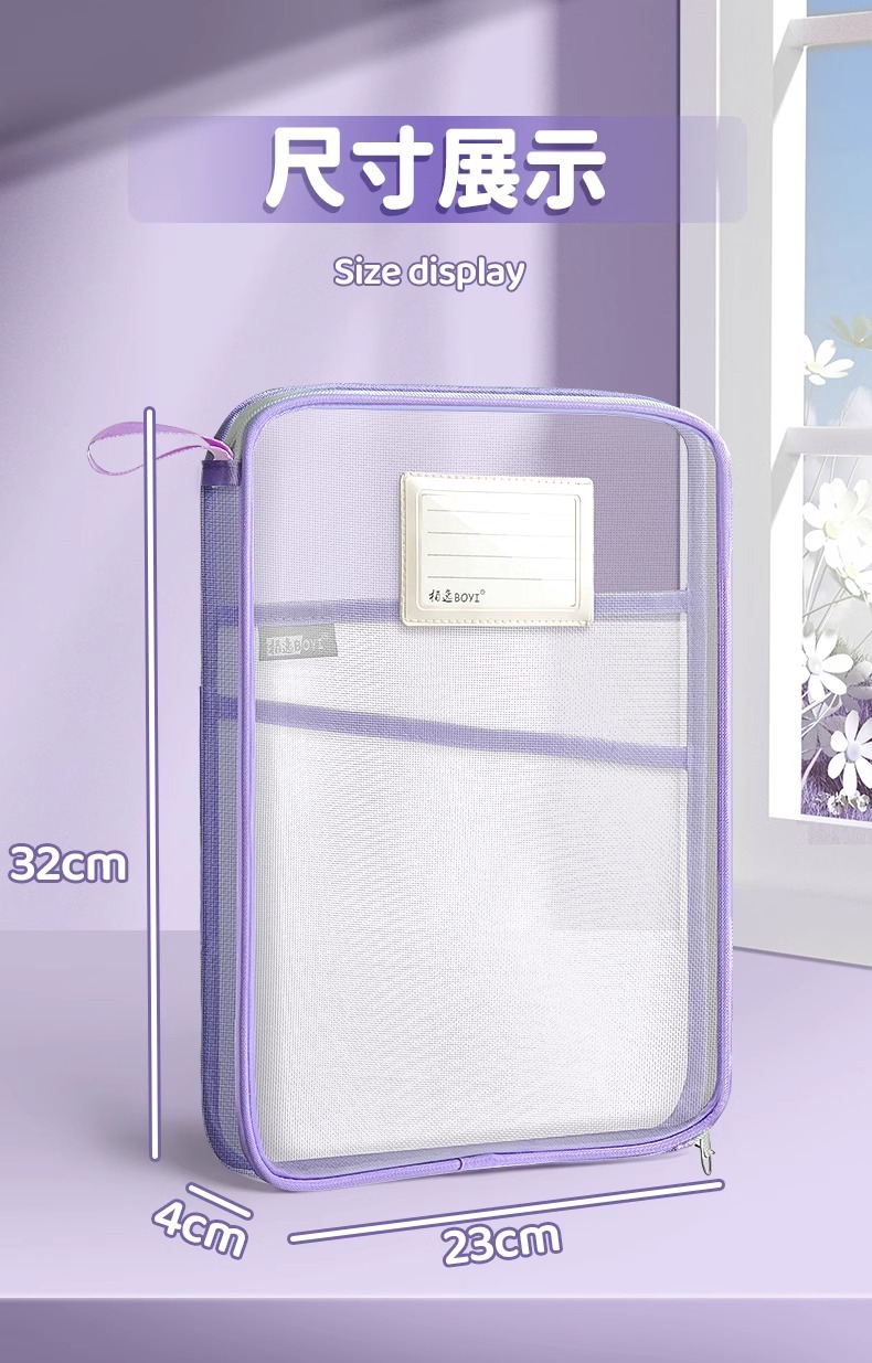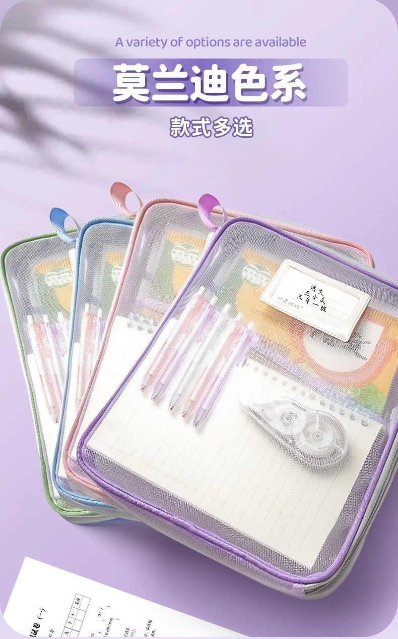 L 형 주제 분류 가방 투명 문서 가방 지퍼 메쉬 큰 오프닝 학생 손을 들고 책 가방 시험 l스토어 가기