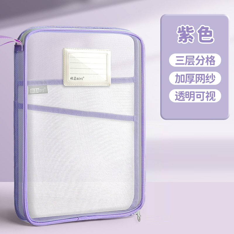 L 형 주제 분류 가방 투명 문서 가방 지퍼 메쉬 큰 오프닝 학생 손을 들고 책 가방 시험 l