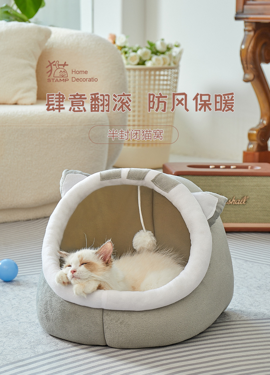 사계절 보편적 인 반 폐쇄 고양이 둥지 겨울 따뜻한 작은 개 둥지 그물 빨간 고양이 둥지 개 둥지 애완 동물 용품 도매스토어 가기