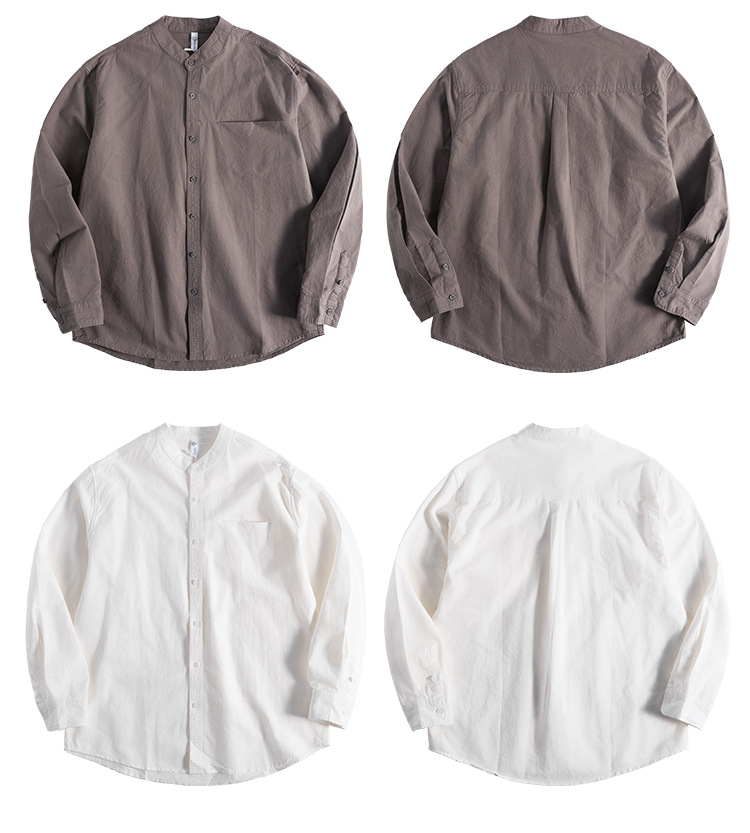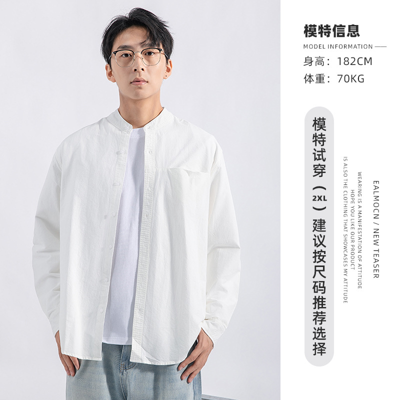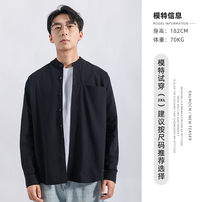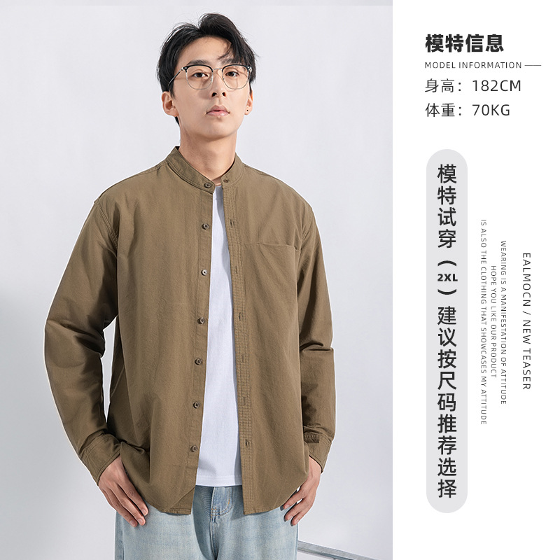 Yi Meng 남자 가을과 겨울 순면 Henley 칼라 셔츠 재킷 남자 하이 엔드 느낌 리퍼 잘 생긴 캐주얼 남성 셔츠 긴 소매스토어 가기
