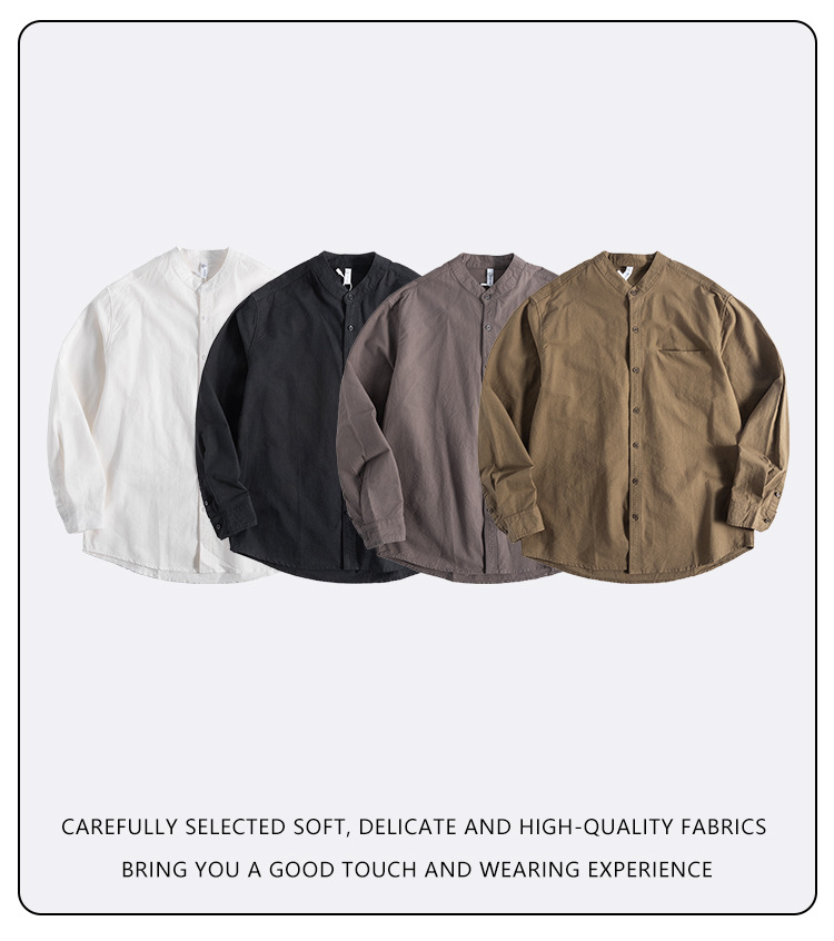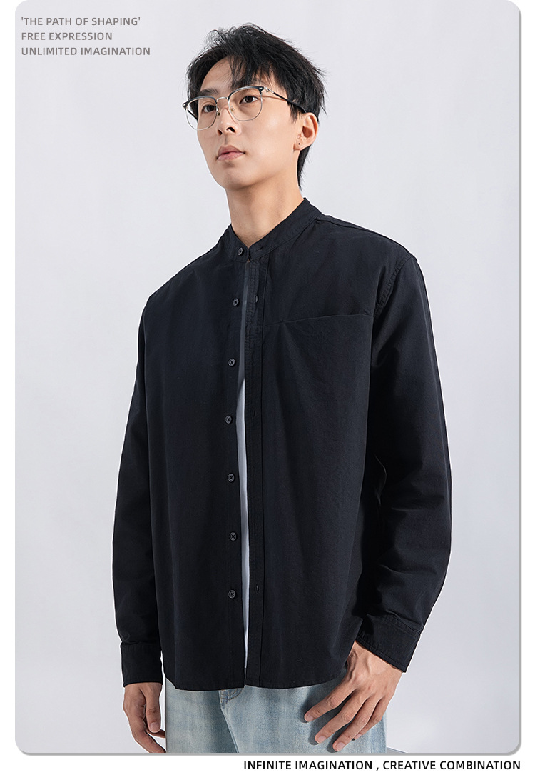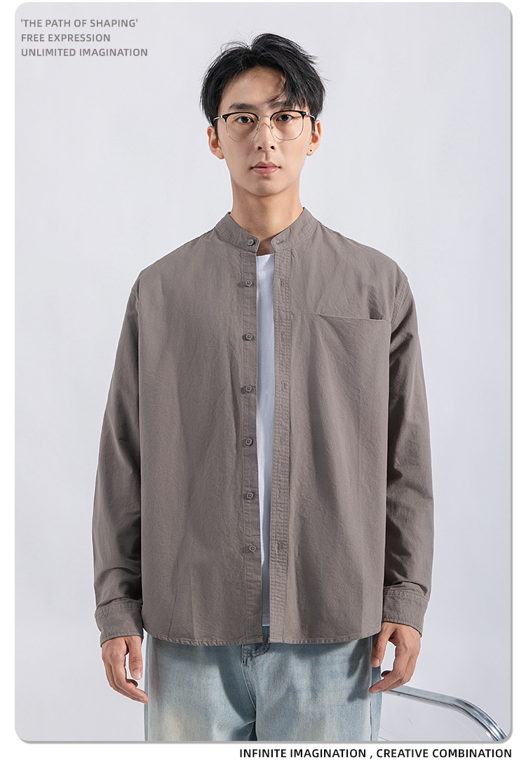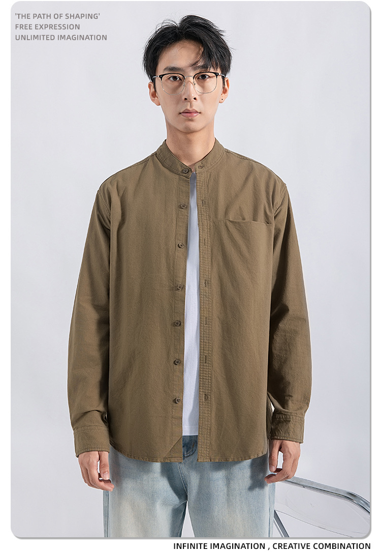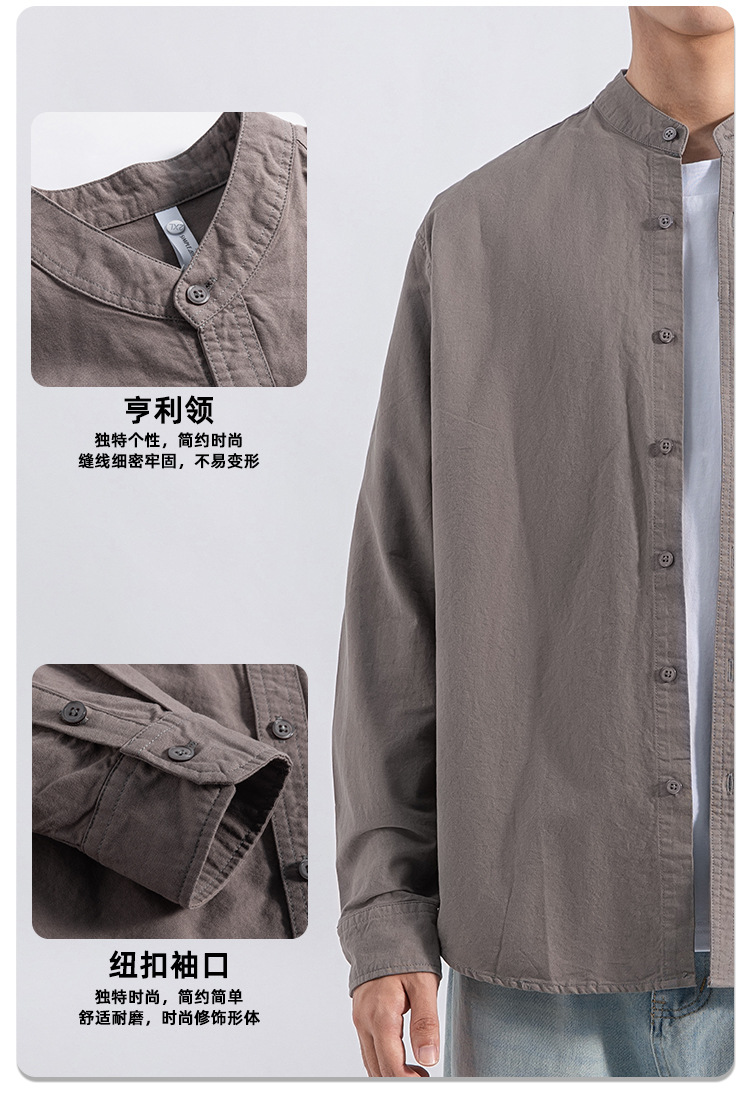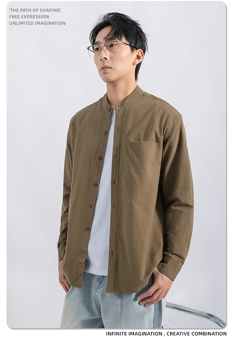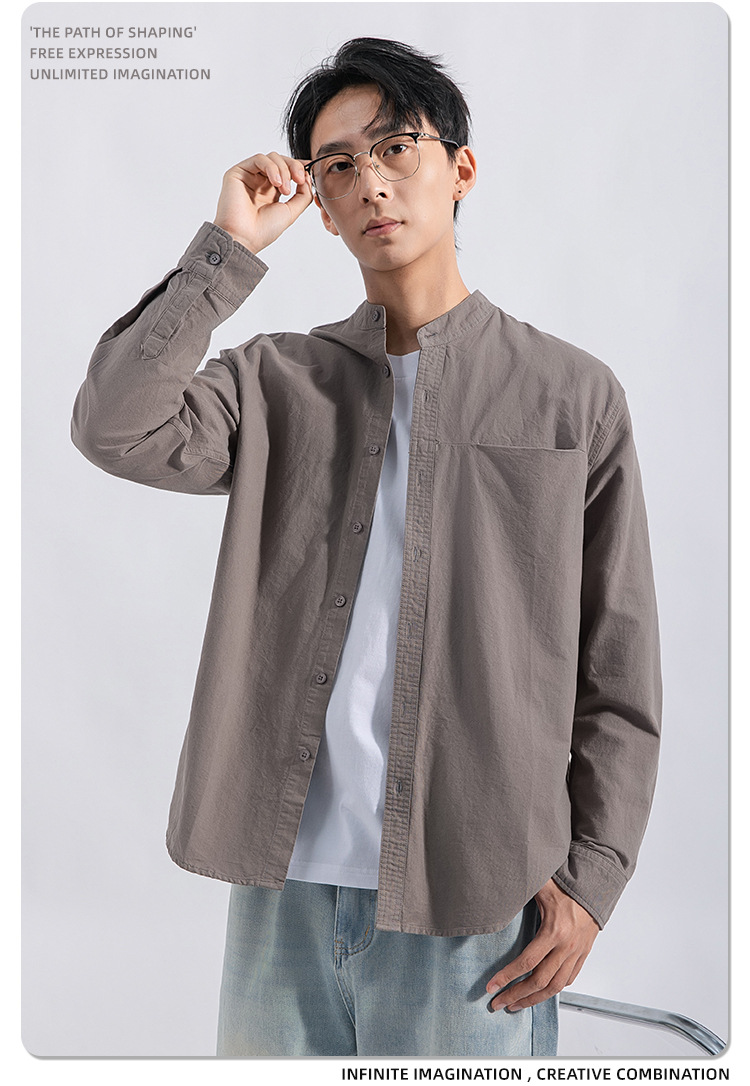 Yi Meng 남자 가을과 겨울 순면 Henley 칼라 셔츠 재킷 남자 하이 엔드 느낌 리퍼 잘 생긴 캐주얼 남성 셔츠 긴 소매