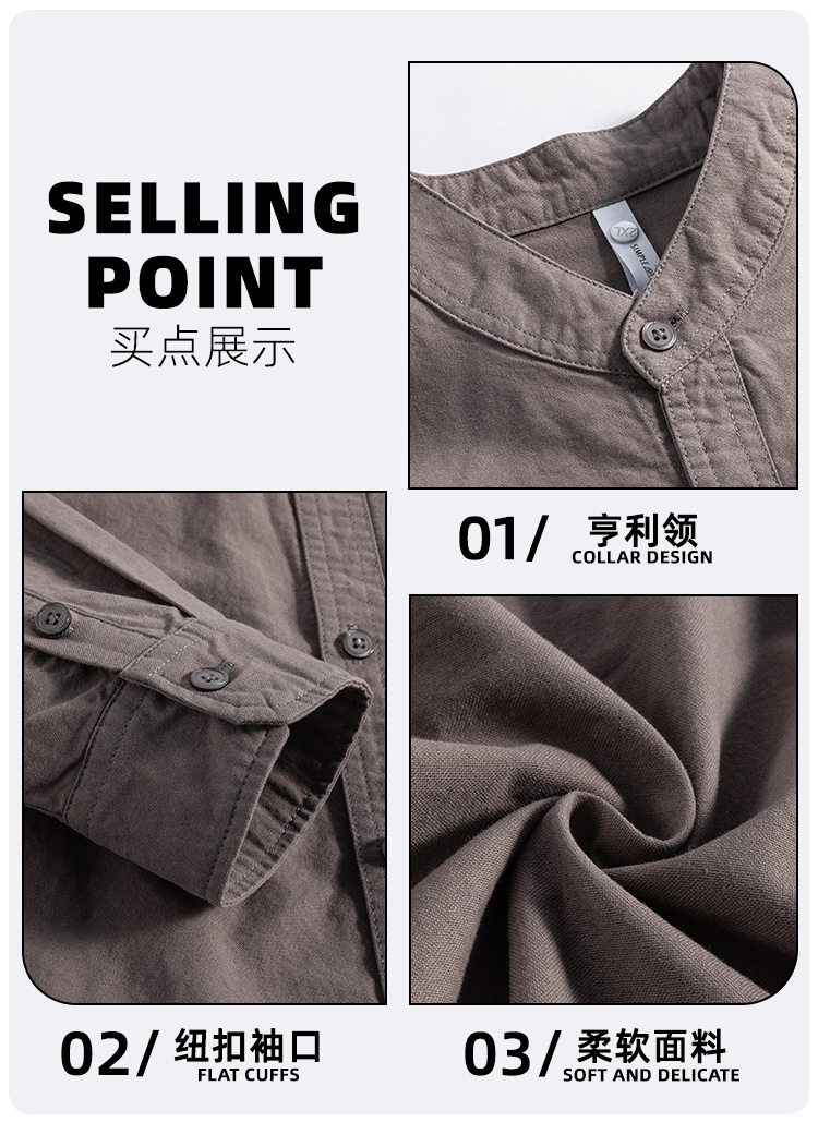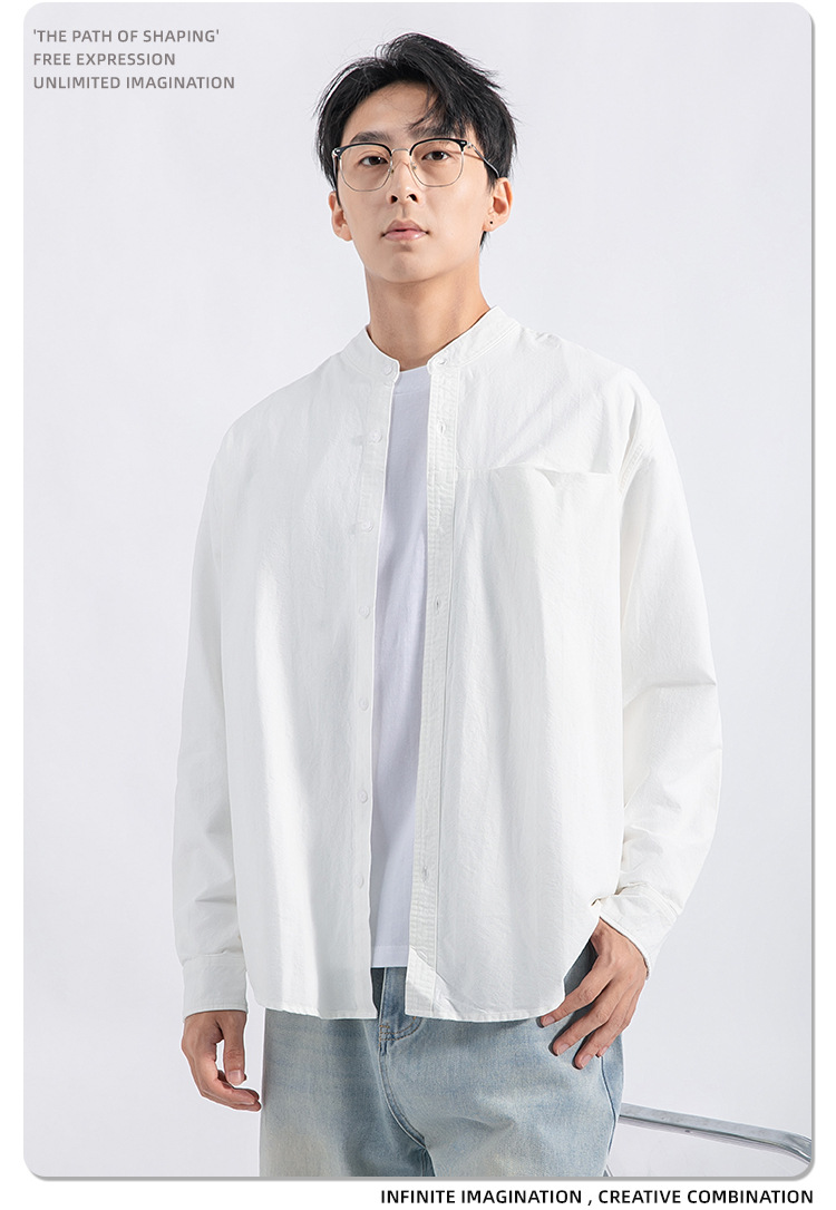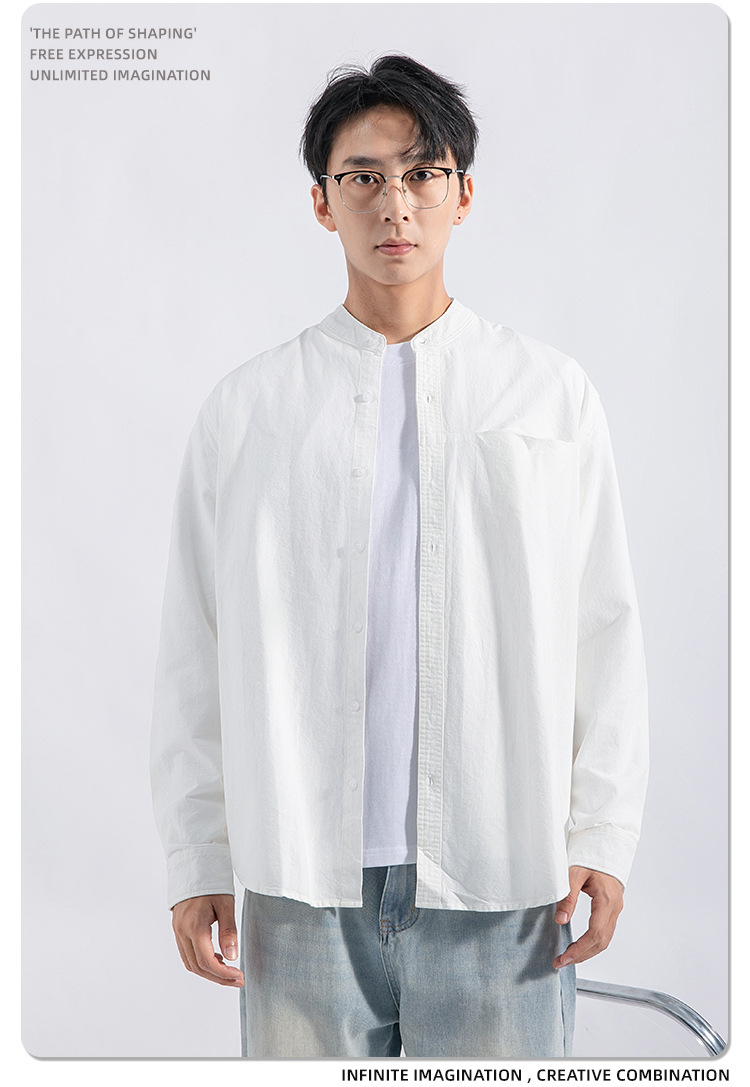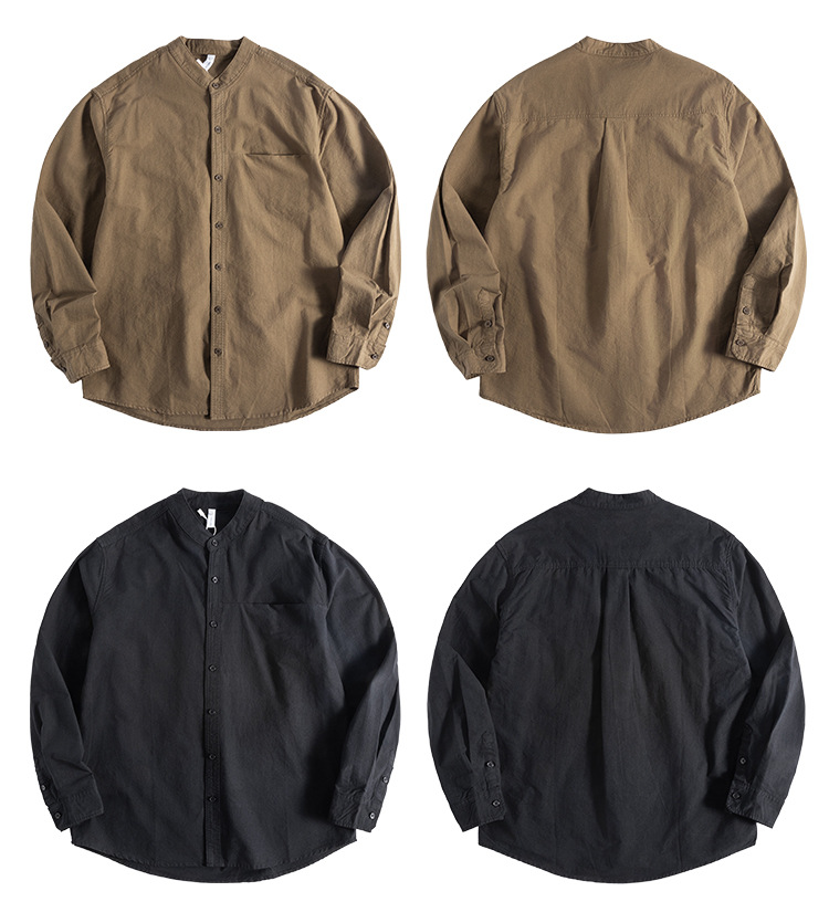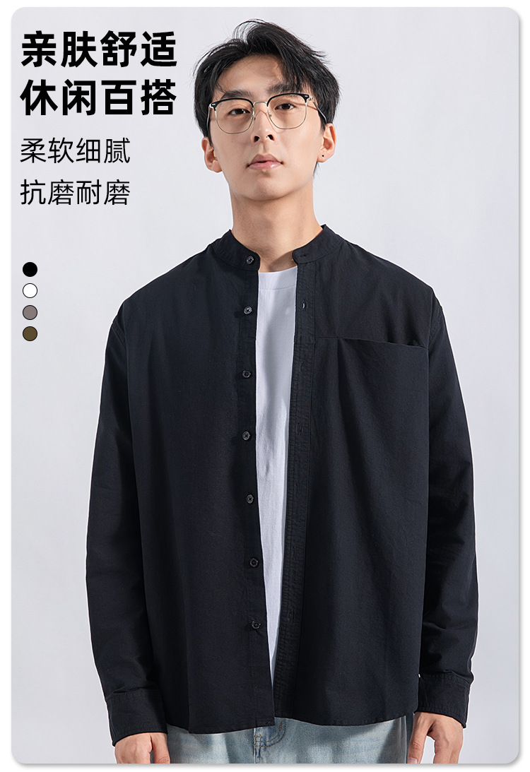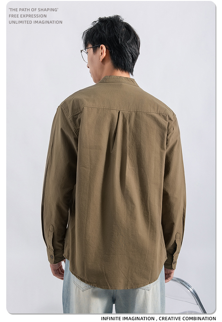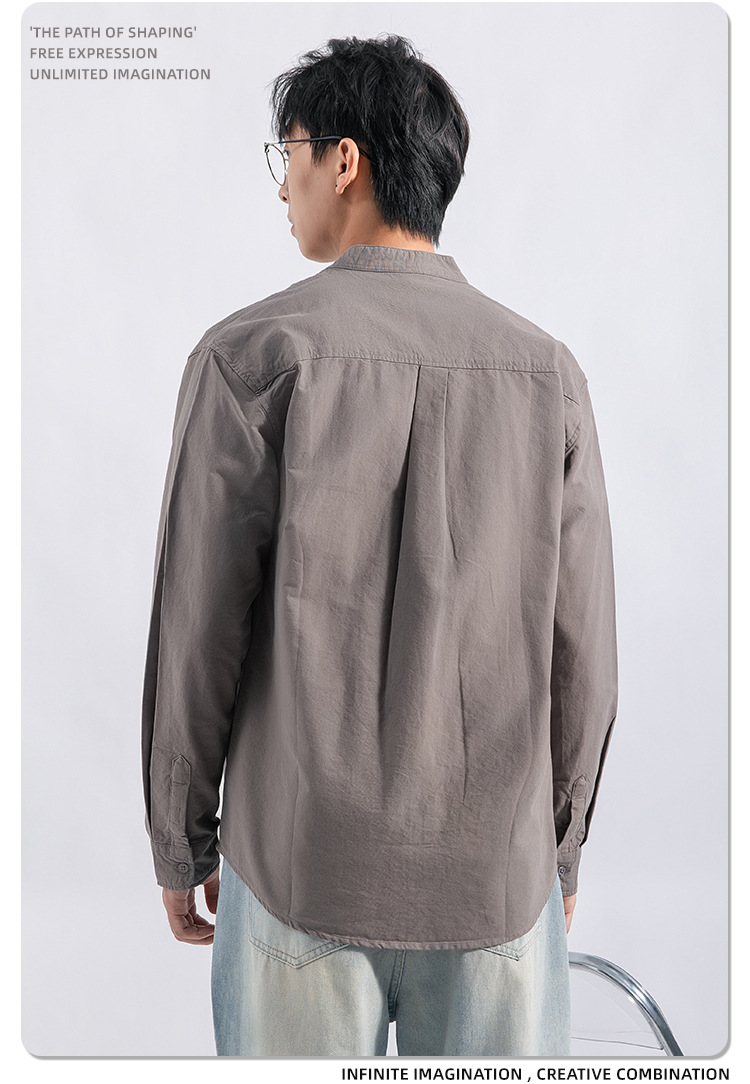 Yi Meng 남자 가을과 겨울 순면 Henley 칼라 셔츠 재킷 남자 하이 엔드 느낌 리퍼 잘 생긴 캐주얼 남성 셔츠 긴 소매