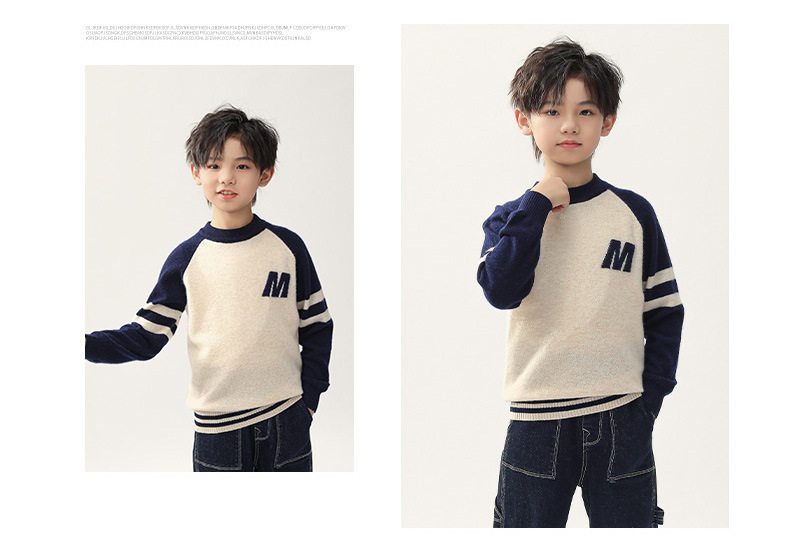 새로운 100% 어린이용 울 스웨터, 남아용 라운드넥 M자 컬러블록 니트, 여아용 따뜻하고 다용도로 활용 가능한 니트스토어 가기