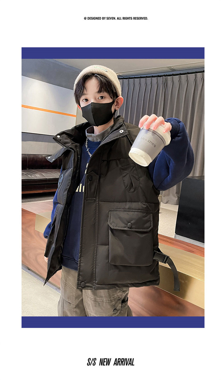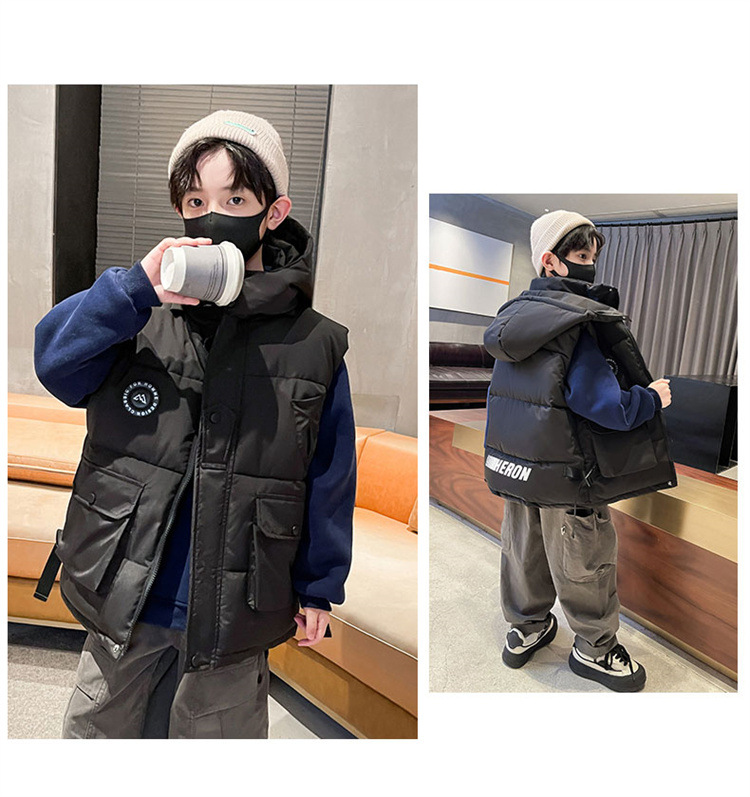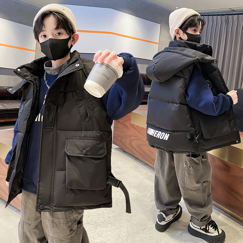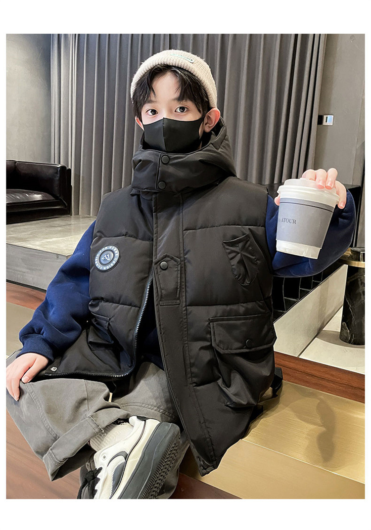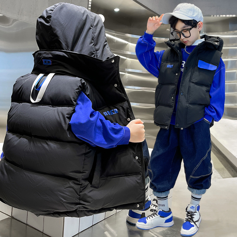남학생 다운 코튼 조끼 외주 2024 새로운 가을과 겨울복 조끼 겨울 중대형 어린이 코튼 자켓 젖은 타이드스토어 가기