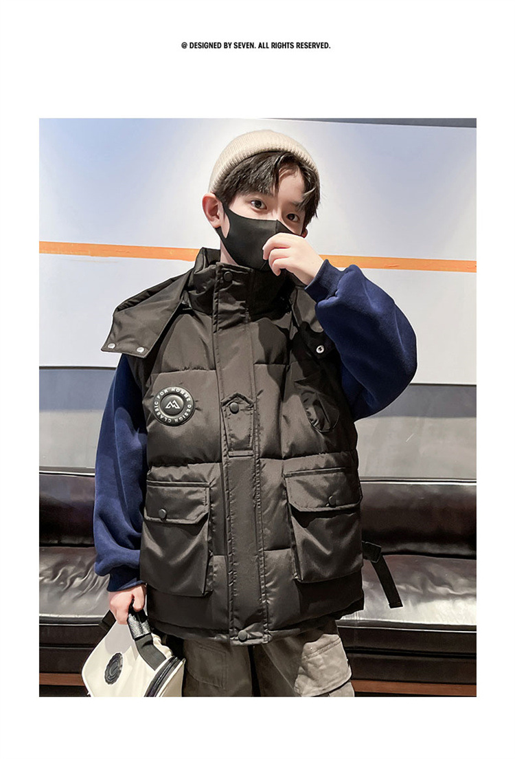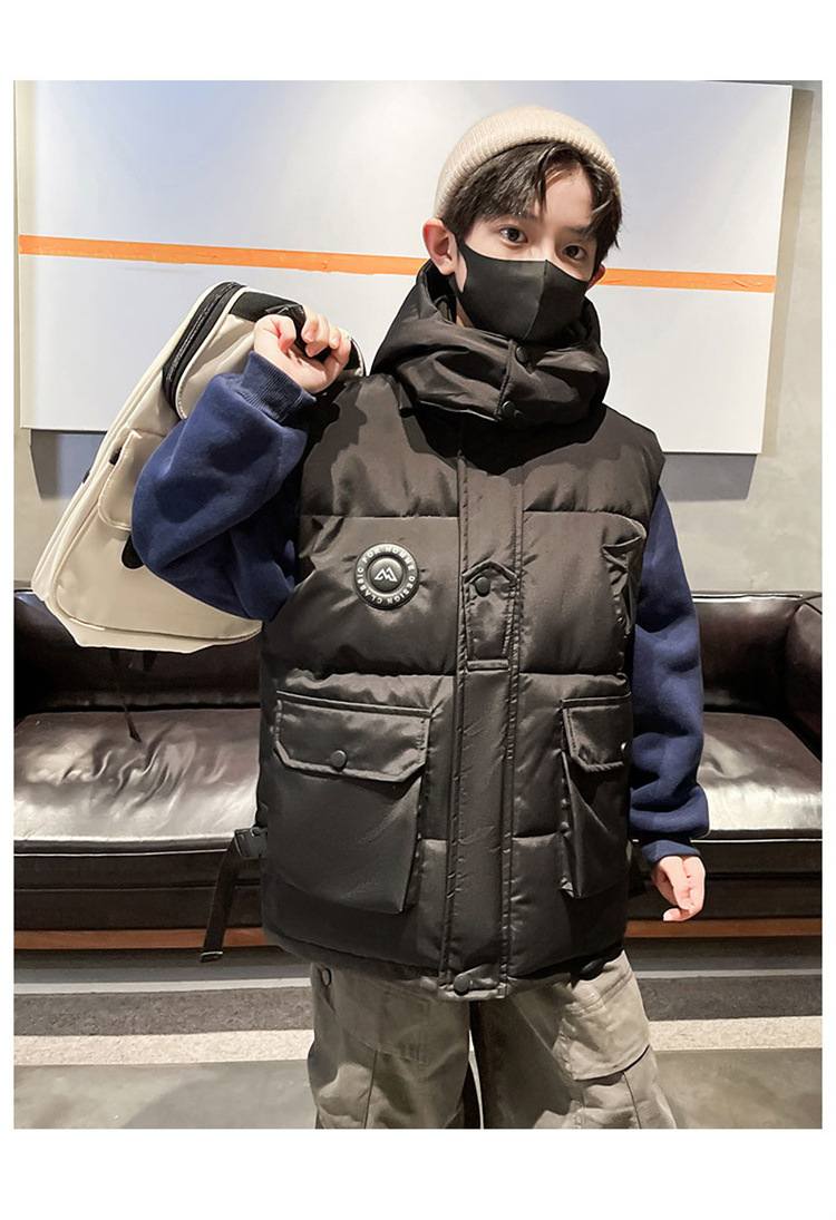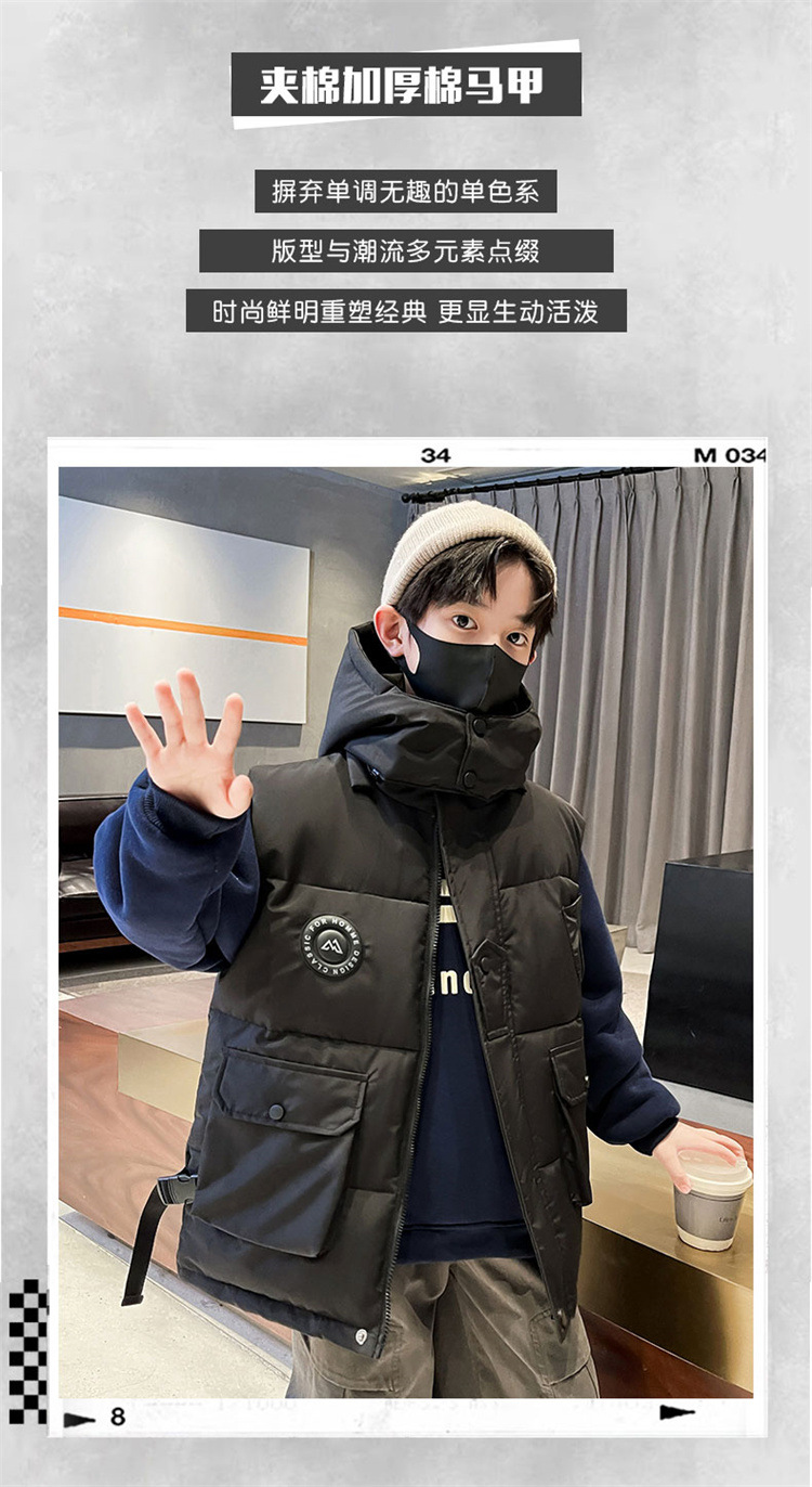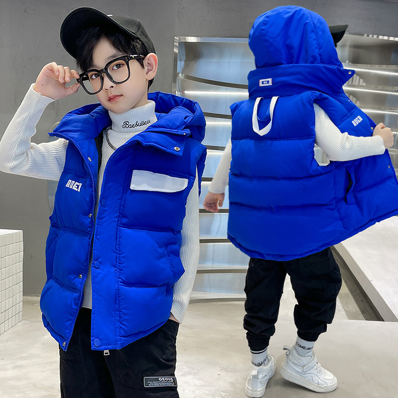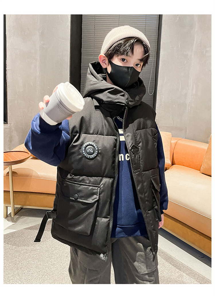 남학생 다운 코튼 조끼 외주 2024 새로운 가을과 겨울복 조끼 겨울 중대형 어린이 코튼 자켓 젖은 타이드스토어 가기