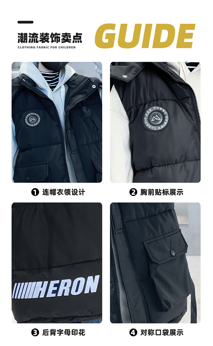 남학생 다운 코튼 조끼 외주 2024 새로운 가을과 겨울복 조끼 겨울 중대형 어린이 코튼 자켓 젖은 타이드
