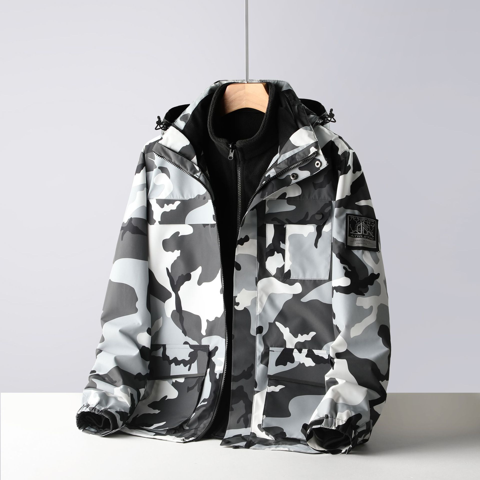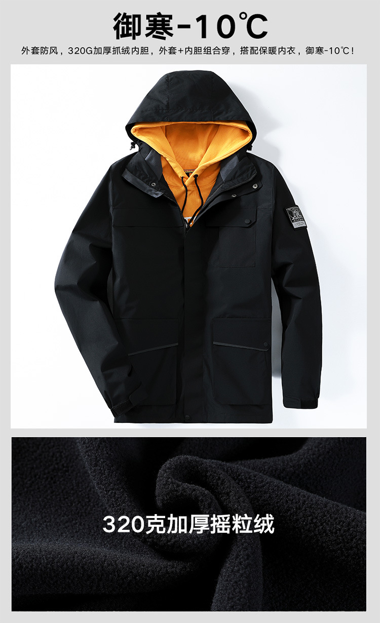 Three-in-One 2 조각 분리 가능한 기모 두꺼운 재킷 방풍 따뜻한 야외 플리스 라이너 커플 재킷스토어 가기